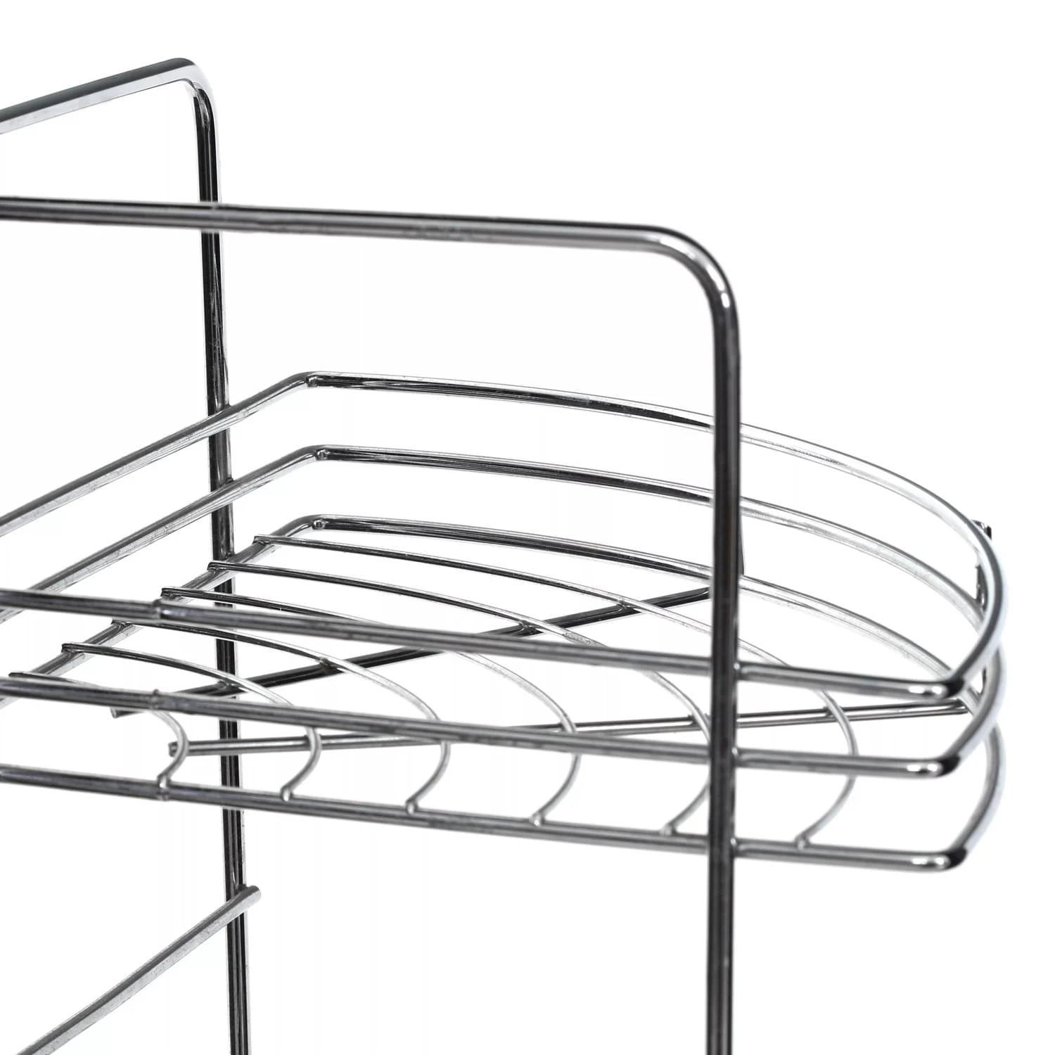 Its simple wedge shaped design allows it to be fitted into the corner of the bathroom, saving valuable floor space. Made from strong and easy to clean wireframe metal it has a polished chrome finish that looks great in contemporary bathrooms.