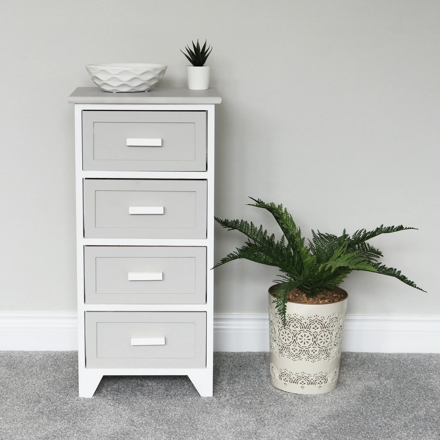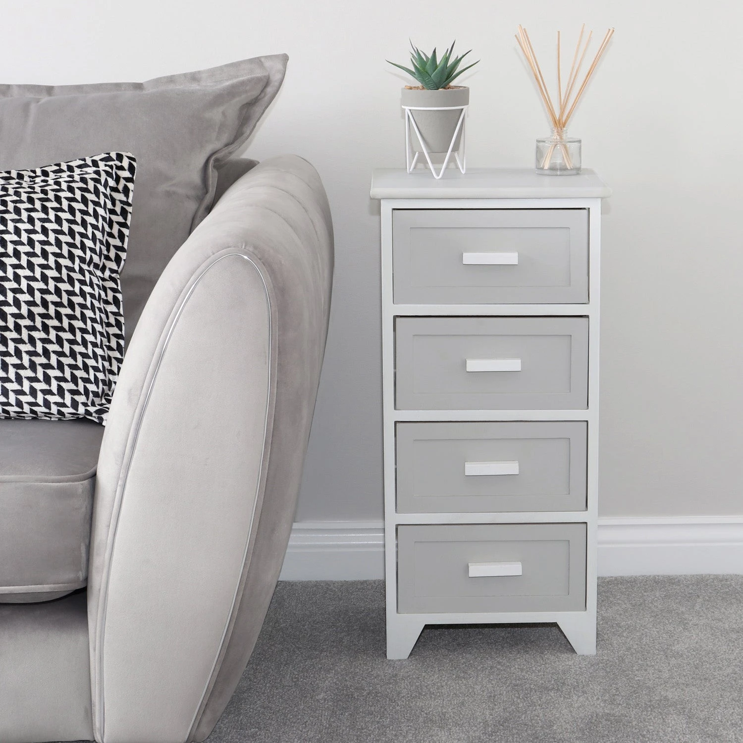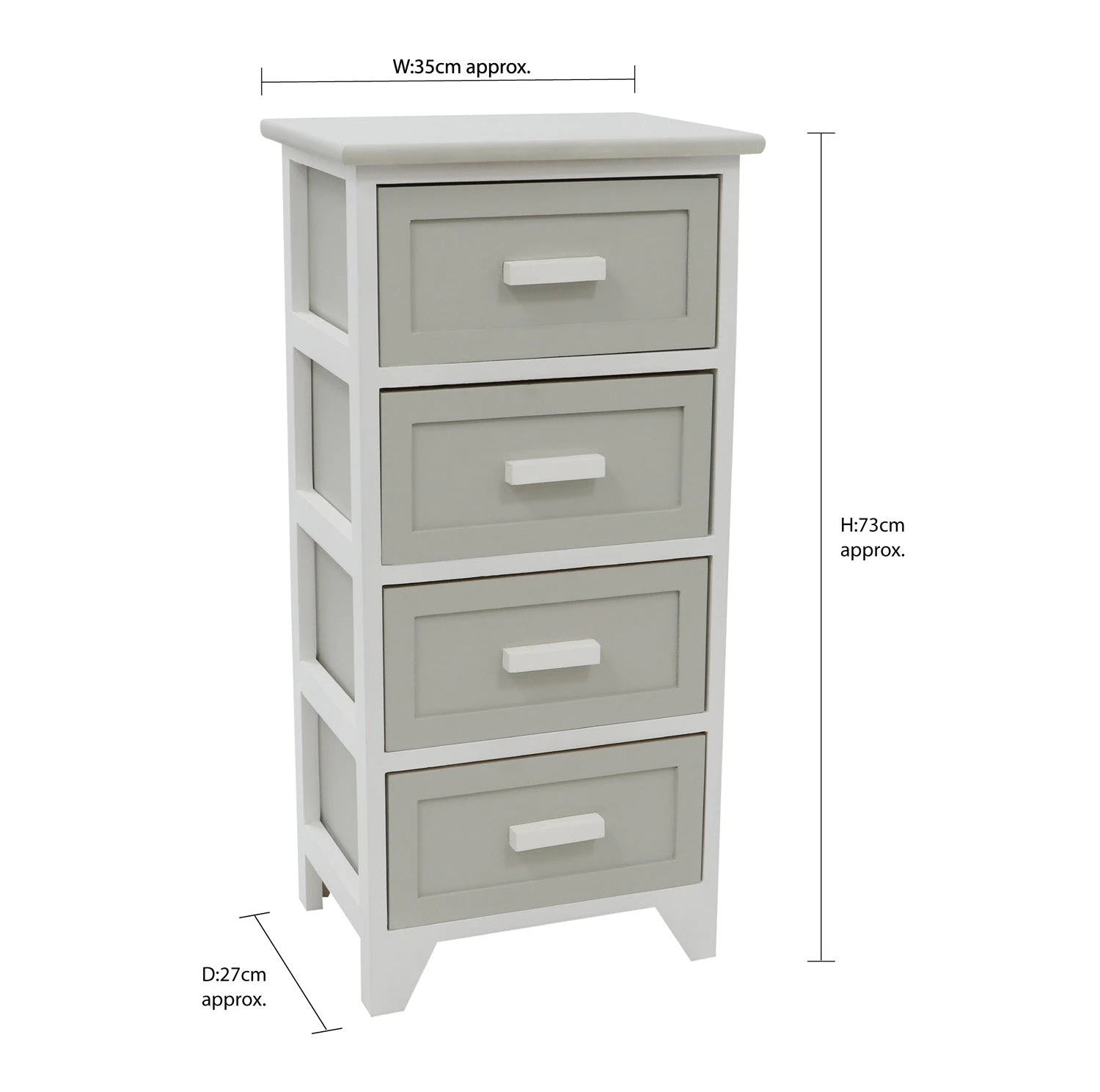 Storage is an important part of any home and our Abingdon four-drawer storage unit is an ideal solution. The unit is crafted from wood with a matt finish and features a two tone grey and white styling, the frame and drawer handles are white with three drawers in grey to make neutral colours pop and work perfectly with your living area.