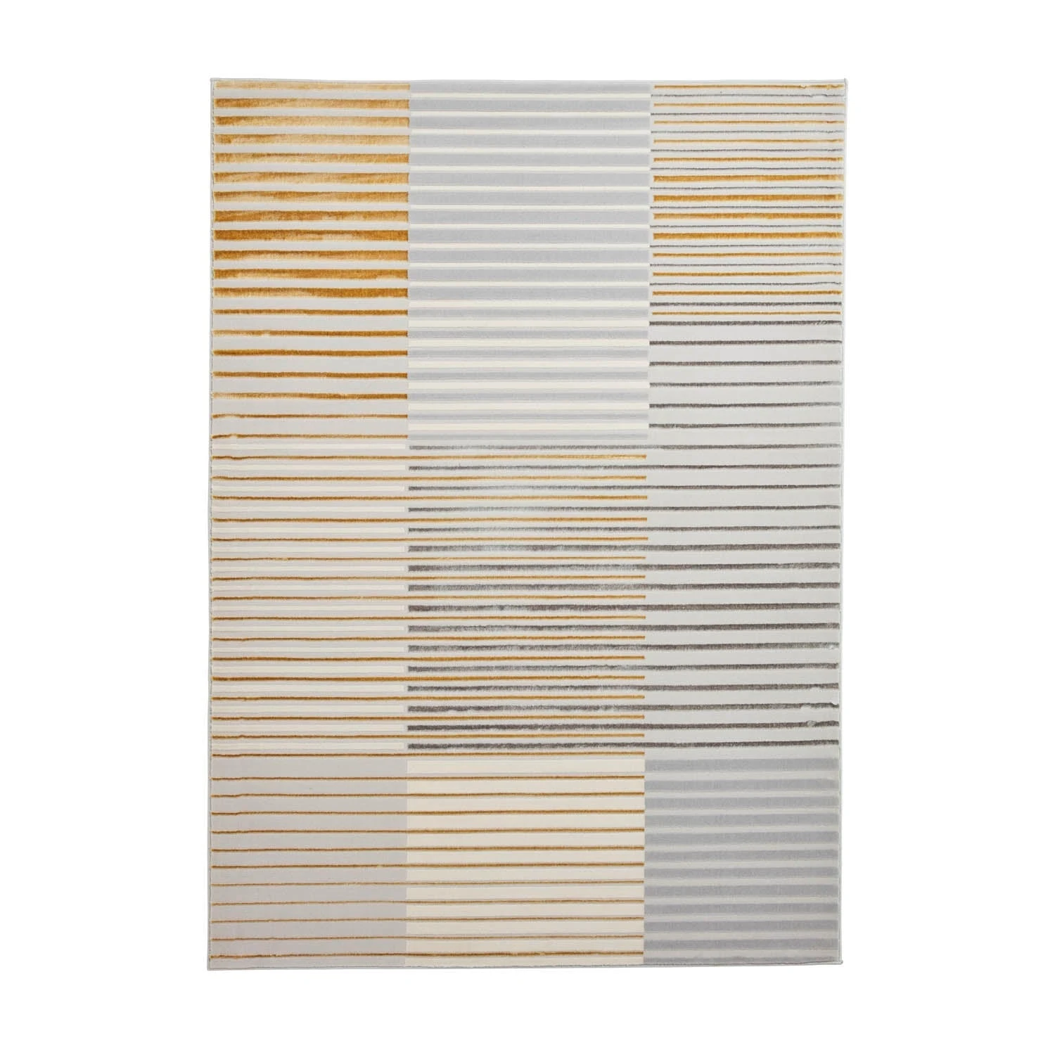 Discover the captivating Apollo range, where contemporary abstract patterns come to life through a delightful blend of textures and fibres. Expertly crafted using polypropylene and polyester piles, this machine-woven grey/gold stripe rug boasts exceptional detail along with a dense, oh-so-soft feel you’ll adore.