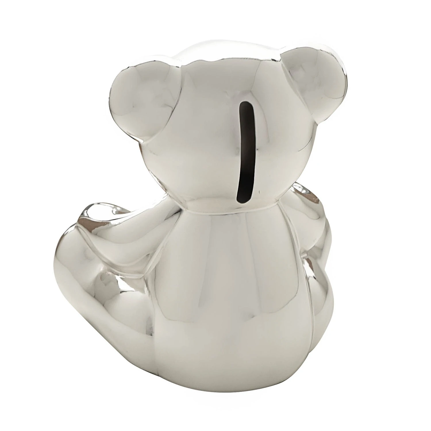 This wonderful keepsake provides glistening decoration for the nursery of new family arrivals which will be cherished eternally. The real silver plated money box offers great attention to detail which perfectly captures the charm of loveable teddy bears. It features a smooth finish, complete with large money slot for saving coins and easy-to-remove rubber bung on the base.