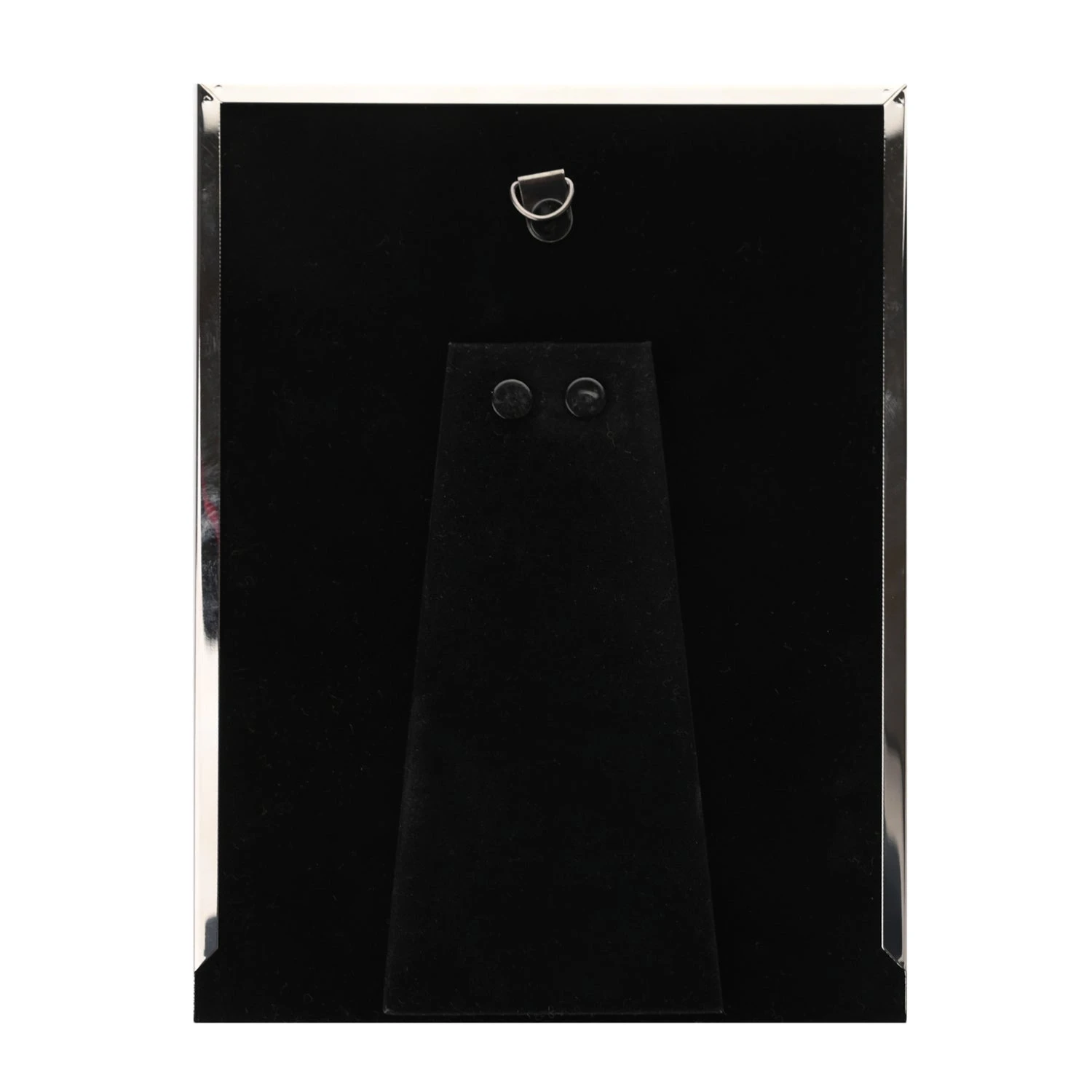 This beautifully decorated frame offers soft tones and glistening finishes to help celebrate an important day. The silver metal frame features a blue mount and portrait aperture for either freestanding display or wall hanging. It is embellished with a crystal finished silver teddy bear icon on the corner of the aperture.