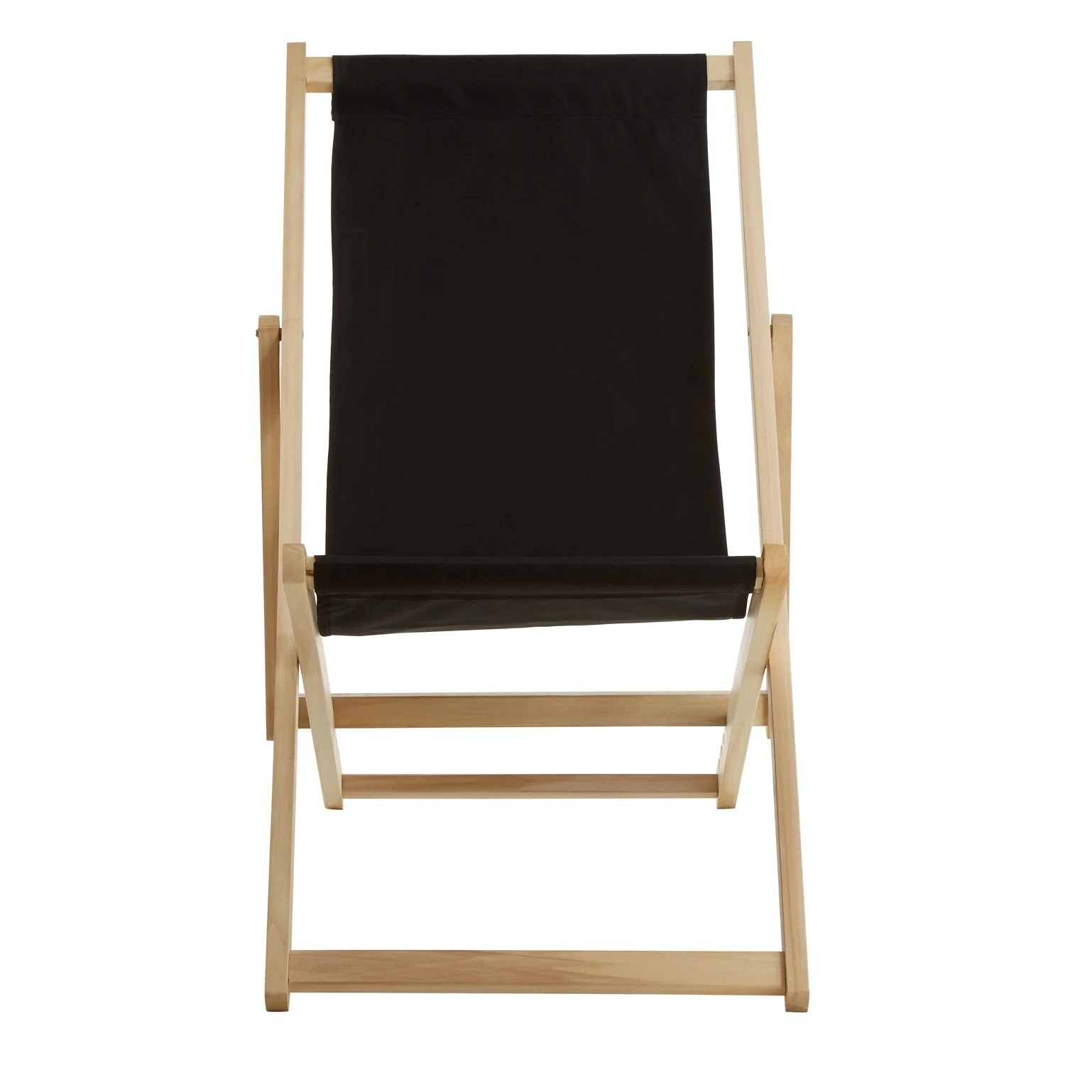 This deck chair has a tough, solid hardwood frame which has a natural colour that gives it a fresh and light appeal. Notches in the rear legs allow the seating position to be adjusted from a lazy recline to a more upright style. The black sling means adds a modern and breezy accent to the patio and garden.