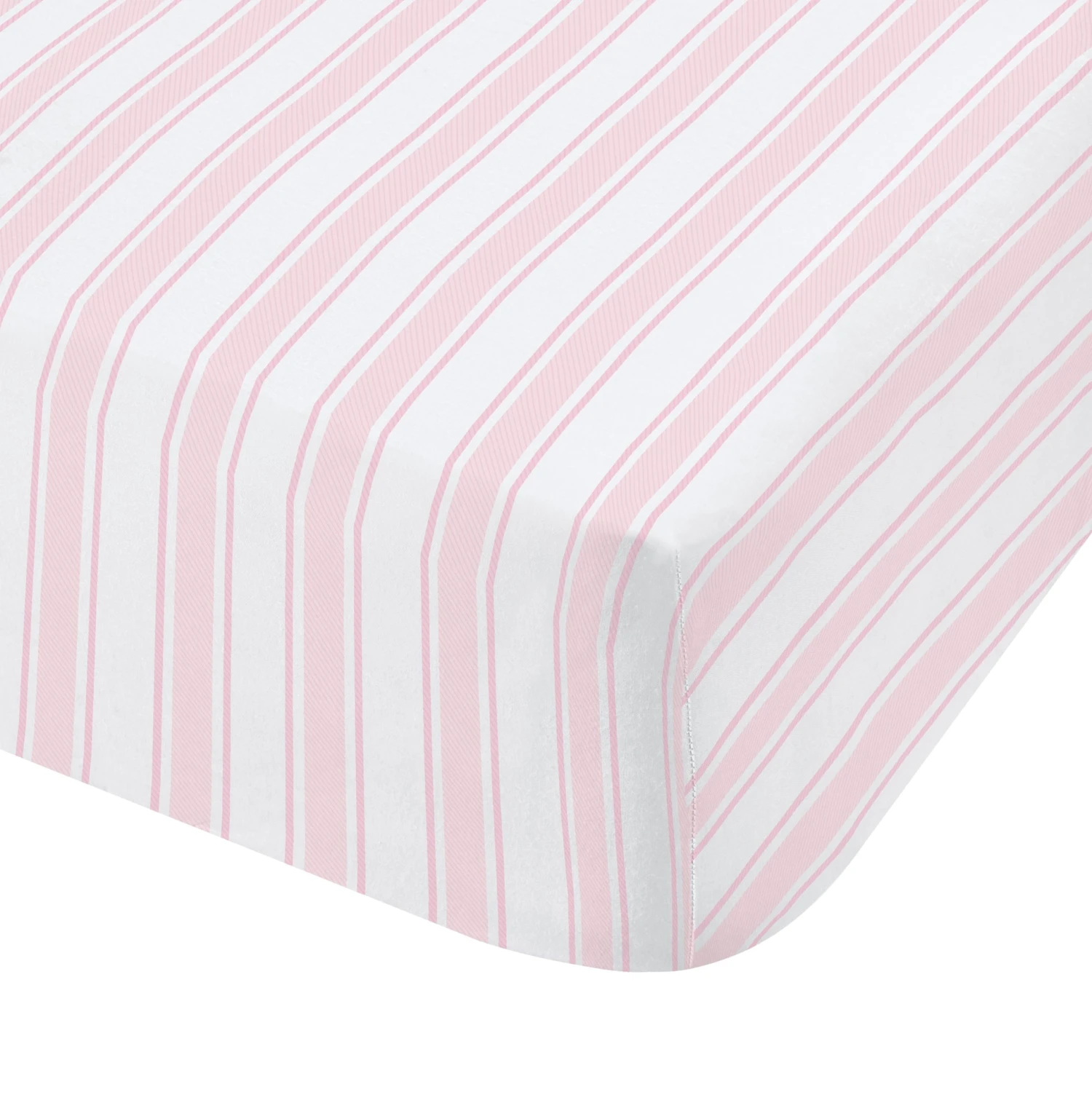 The sheet presents itself with ticking stripes in blush pink and white, the perfect item to coordinate with the match duvet set.