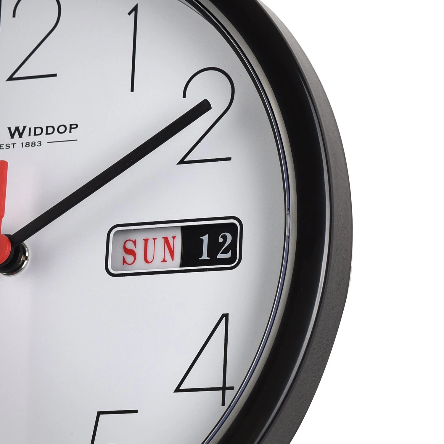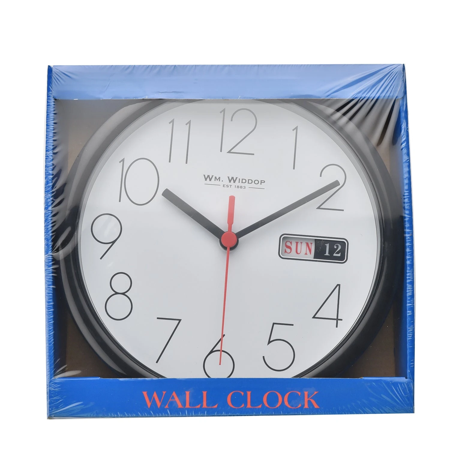 With its understated, monochrome design, this black wall clock will look great in any home, complementing most interior décor styles. In place of the ‘3’ on the clock face is a day and date ticker.