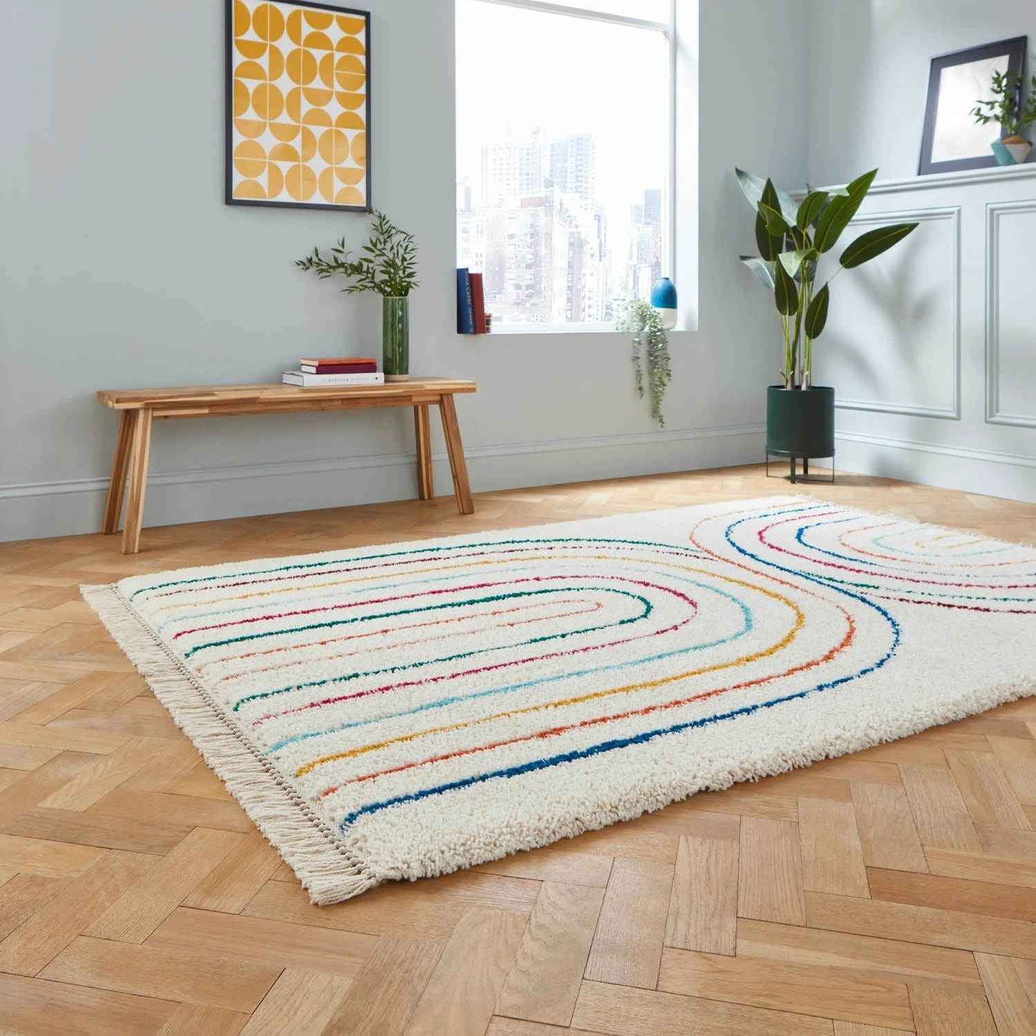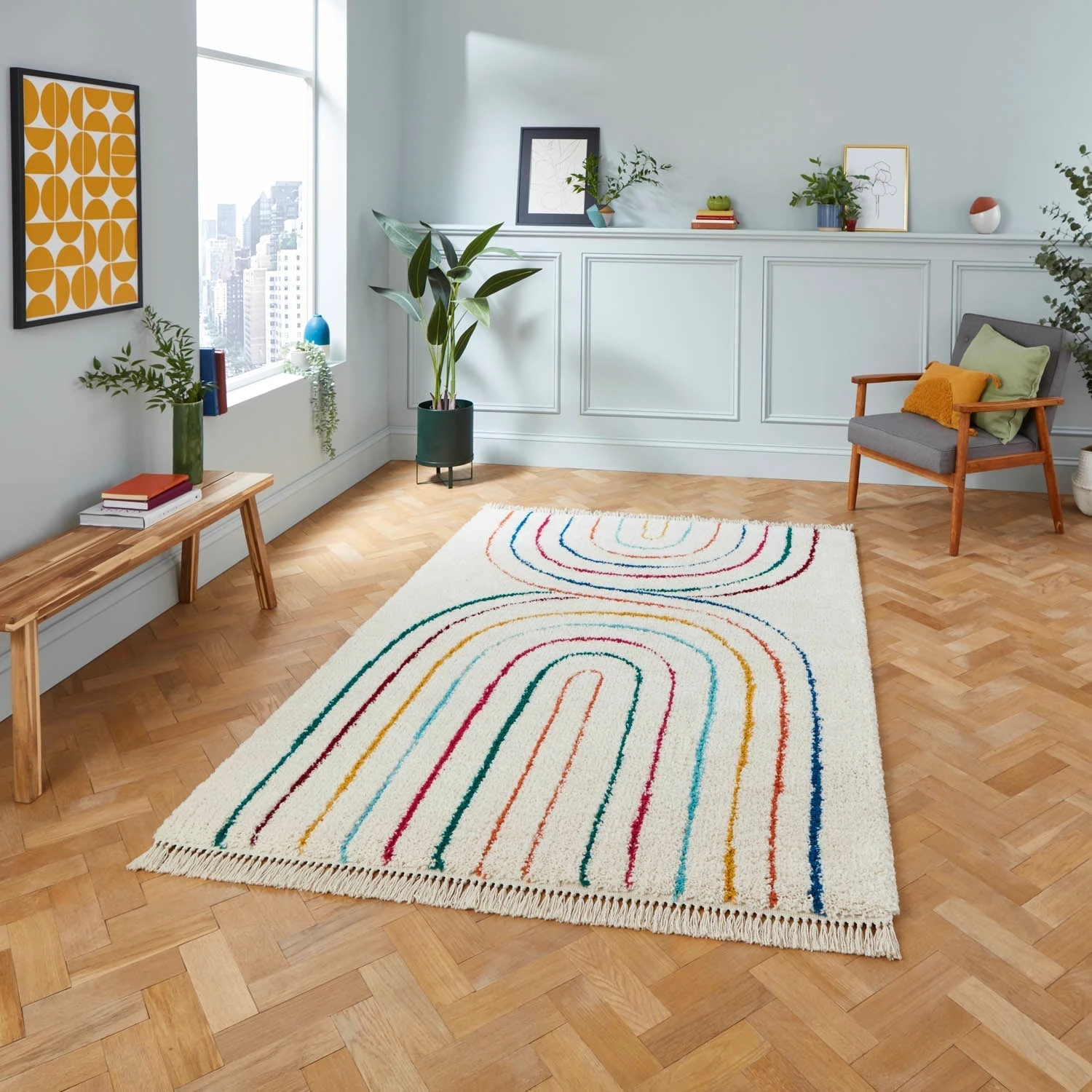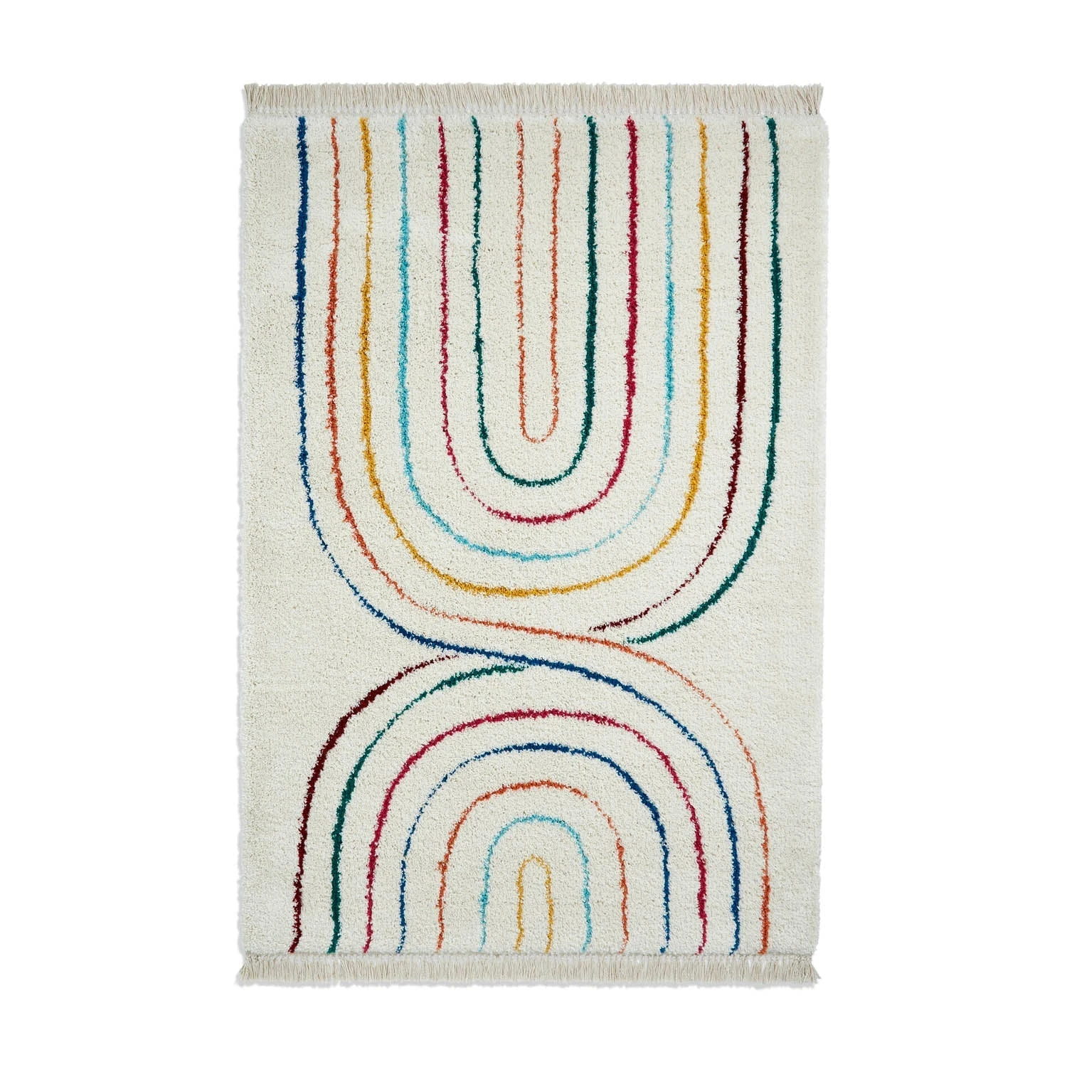 The Boho C443 Multi Rug takes inspiration from the enchanting Moroccan Beni Ourain style, featuring a colourful arches design on a cream base. The Boho rug range is available in a range of colours and fashion-forward designs.