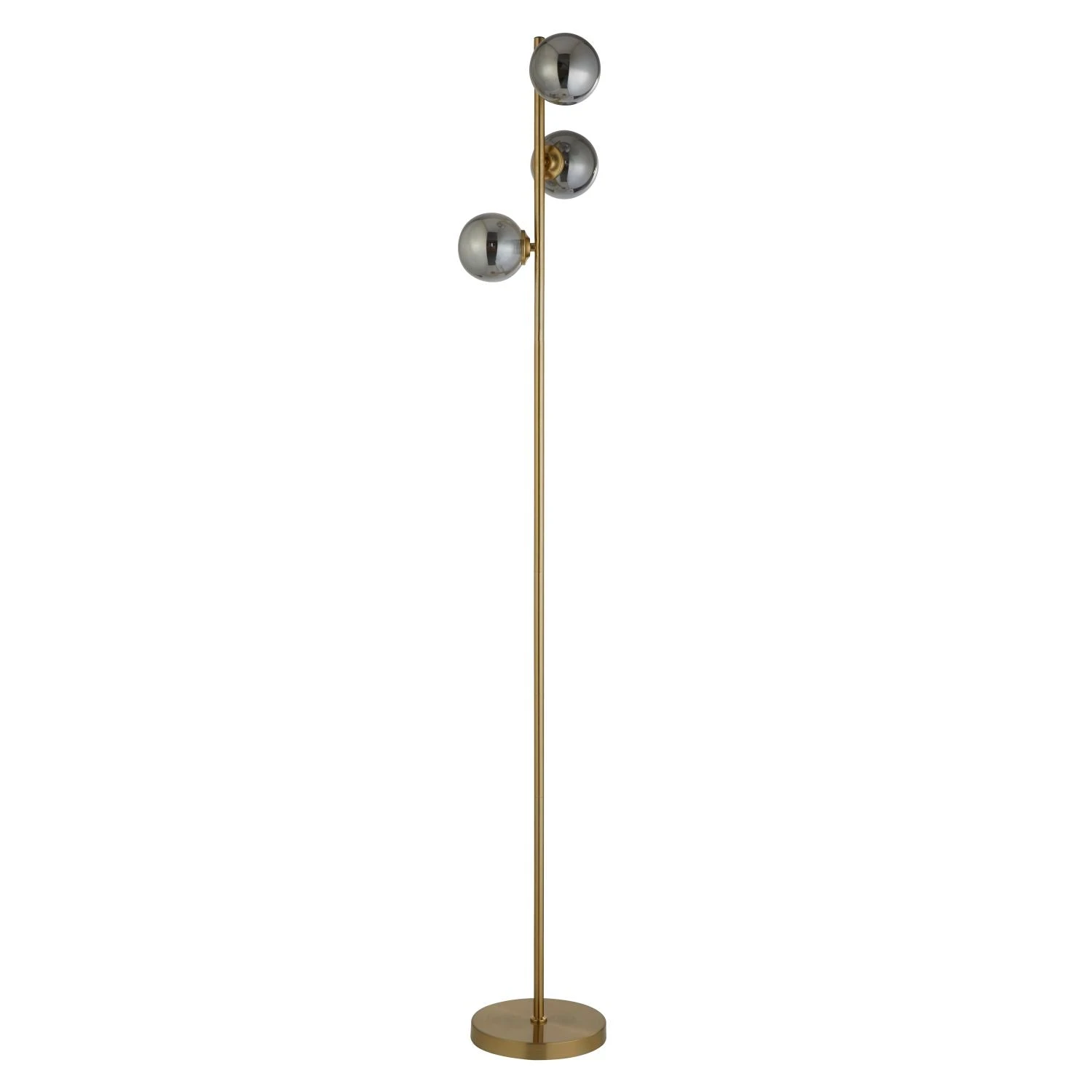 Do you want to elevate your space with a hint of retro charm? Look no further than this sleek multi head floor lamp. With its elegant brass frame and edgy smoke glass shades, it’s the perfect addition to any home. Use it alone to create a cosy ambiance or pair it with the matching pieces for a complete vintage-inspired look. This floor lamp is the statement piece you’ve been searching for!