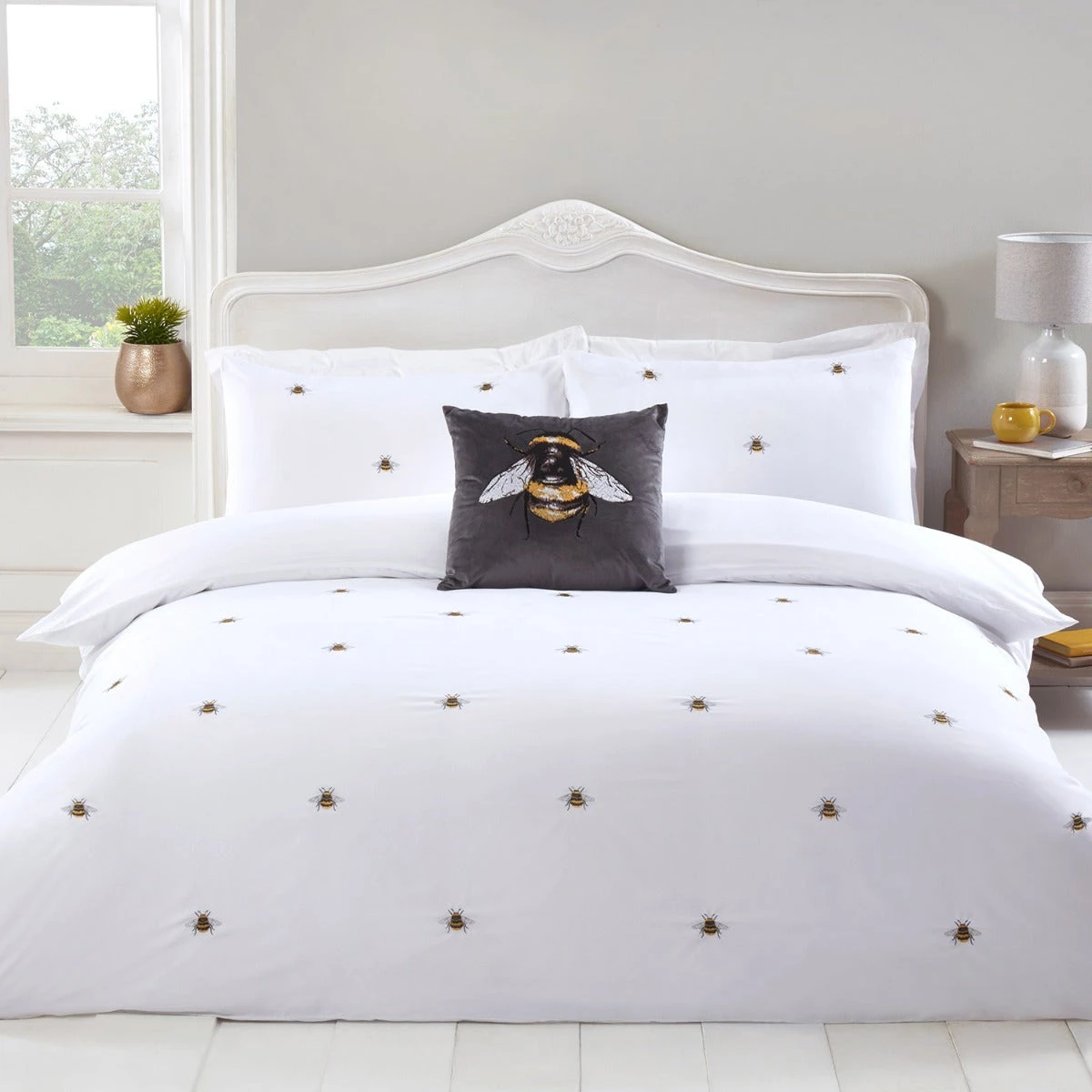Add a touch of sophistication to your bedroom with this chic design featuring beautifully embroidered mini bumblebees. Presented on a crisp clean white ground, this duvet set sits elegantly on the bed and offers a beautifully soft and durable finish.