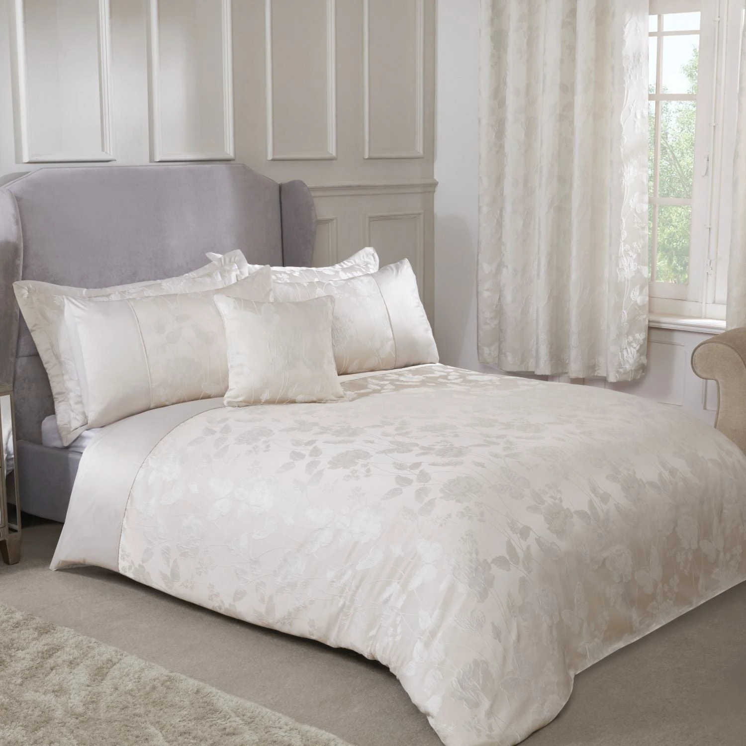Bring a touch of beauty to your bedroom with the Cream Butterfly Meadow Embellished Jacquard Duvet Set!