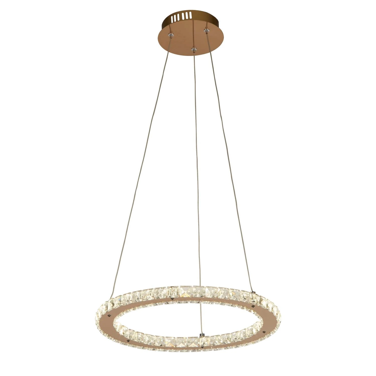 With a rose gold finish, this ring pendant embodies elegance and luxury. Its glass and stainless steel finish adds charm to any living room, hallway or bedroom it is placed in.