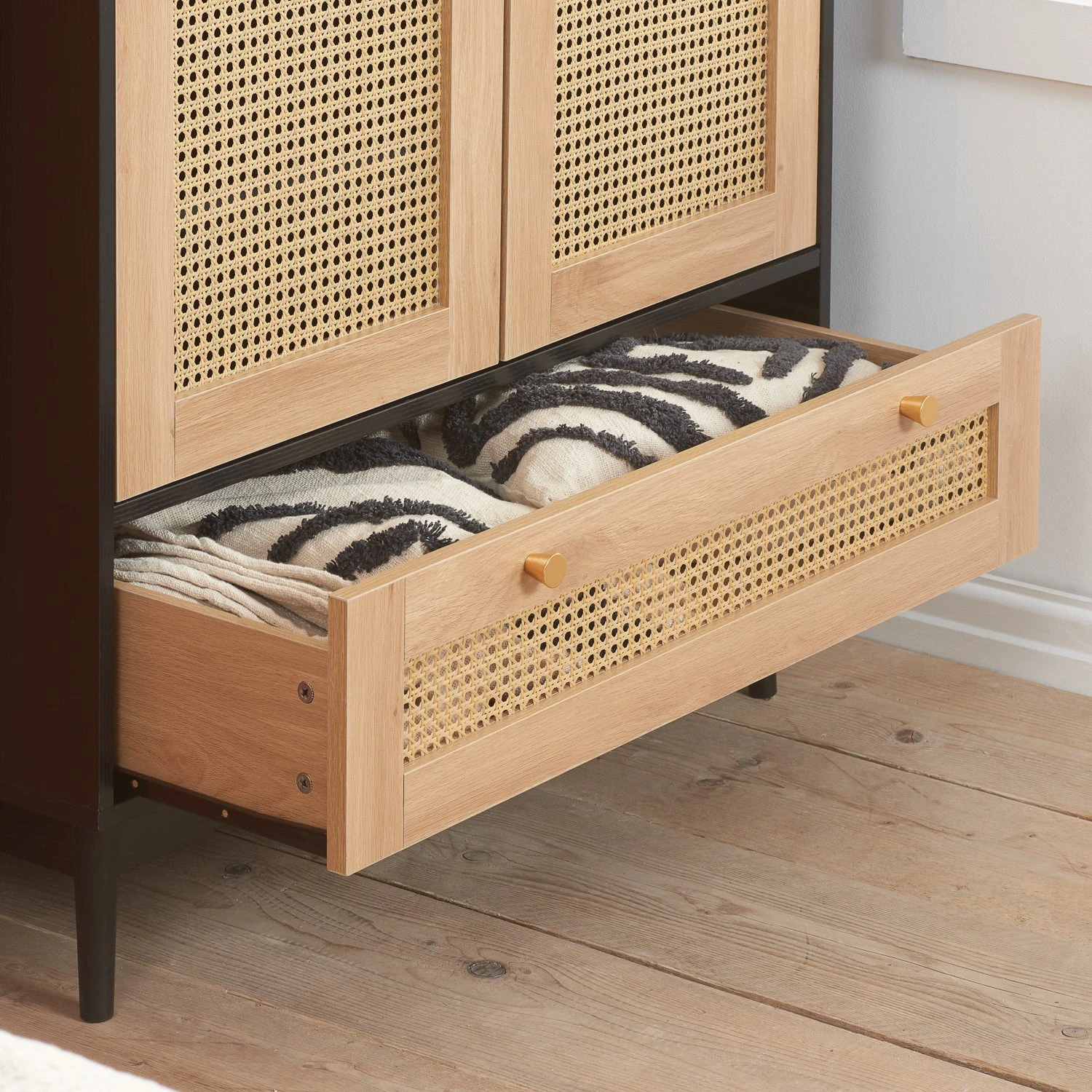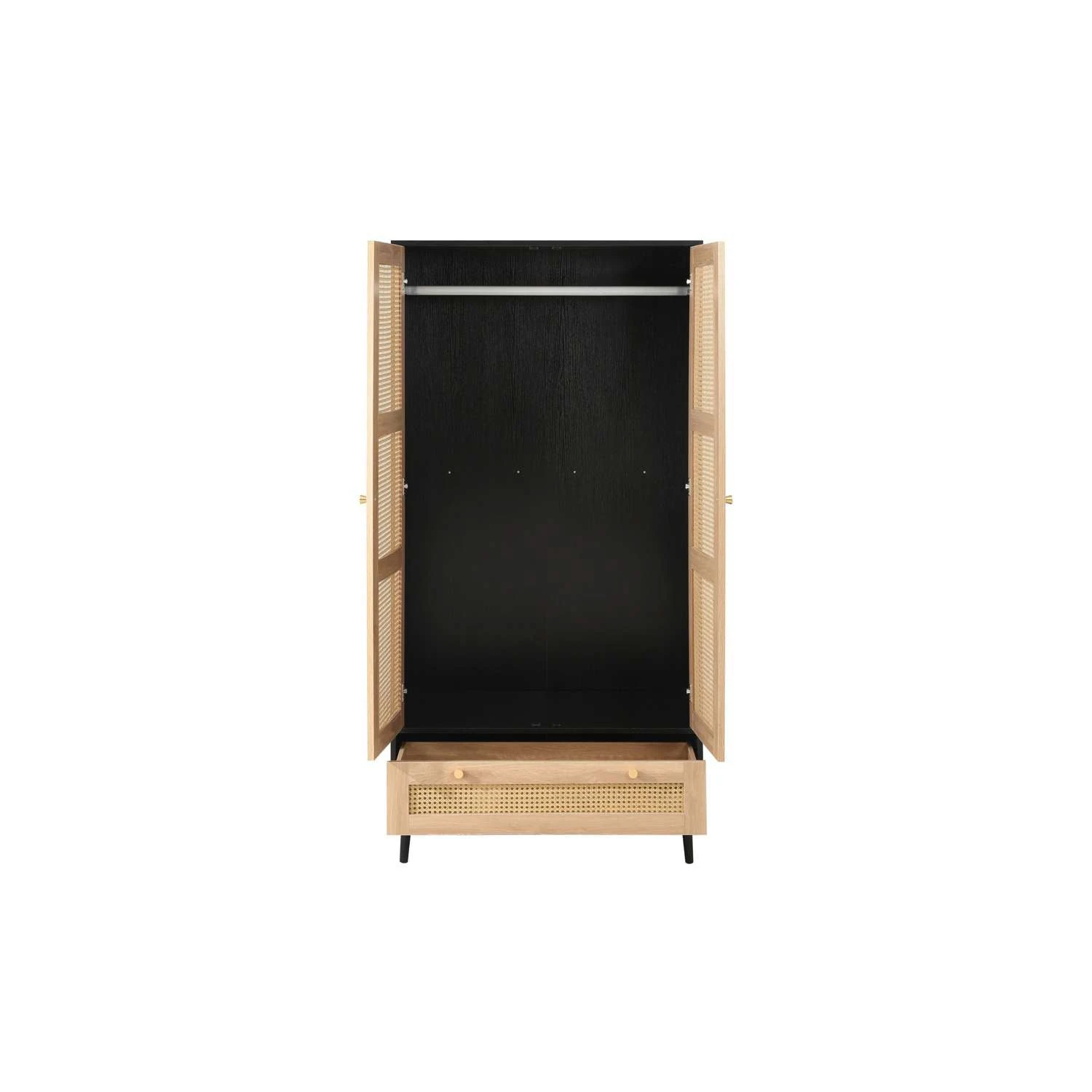 The Croxley 2 door 1 drawer wardrobe offers ample space and features internal shelves along with a handy drawer for storing clothing and accessories. The wardrobe is finished off with beautiful gold handles.