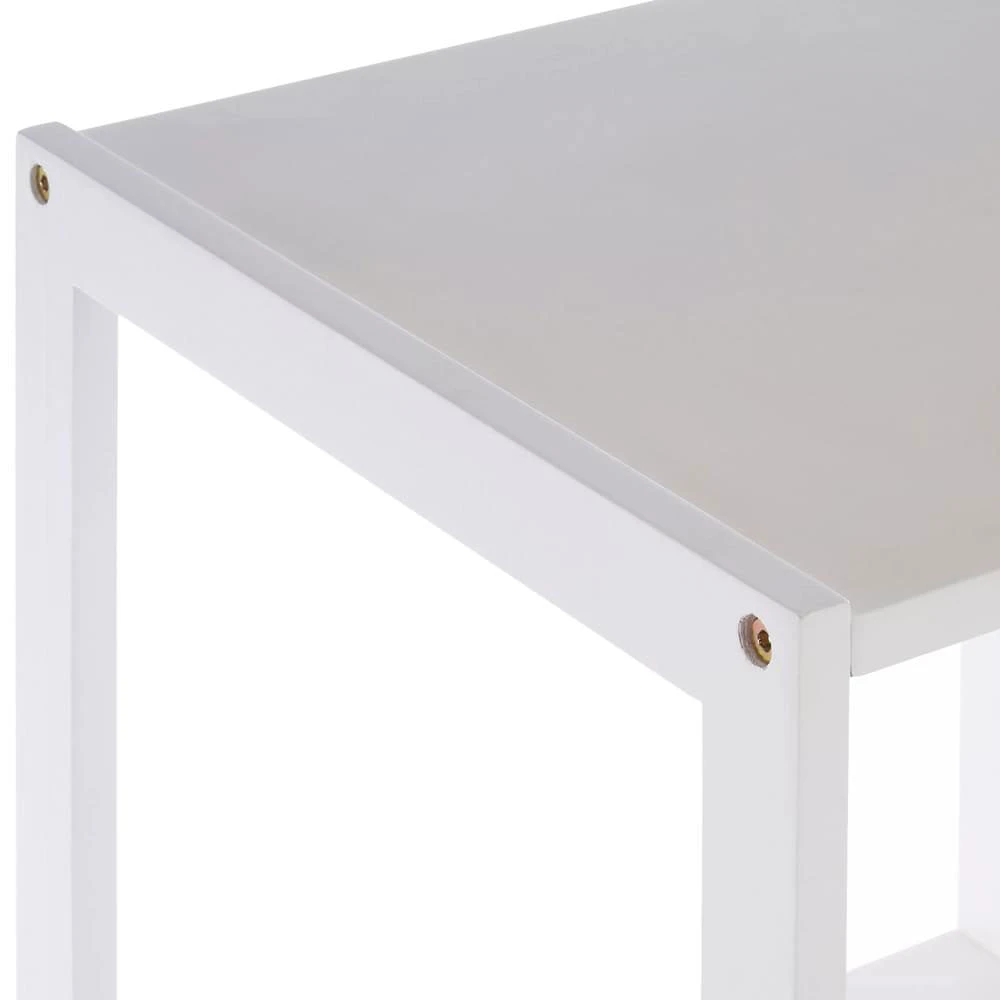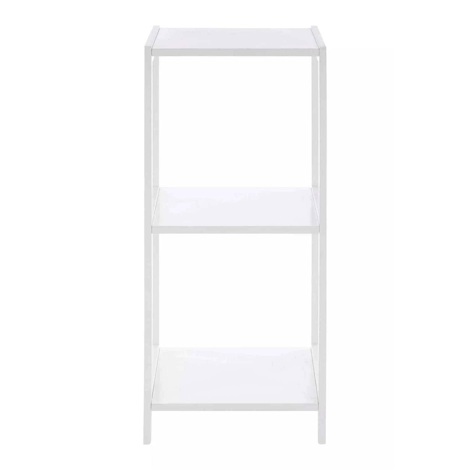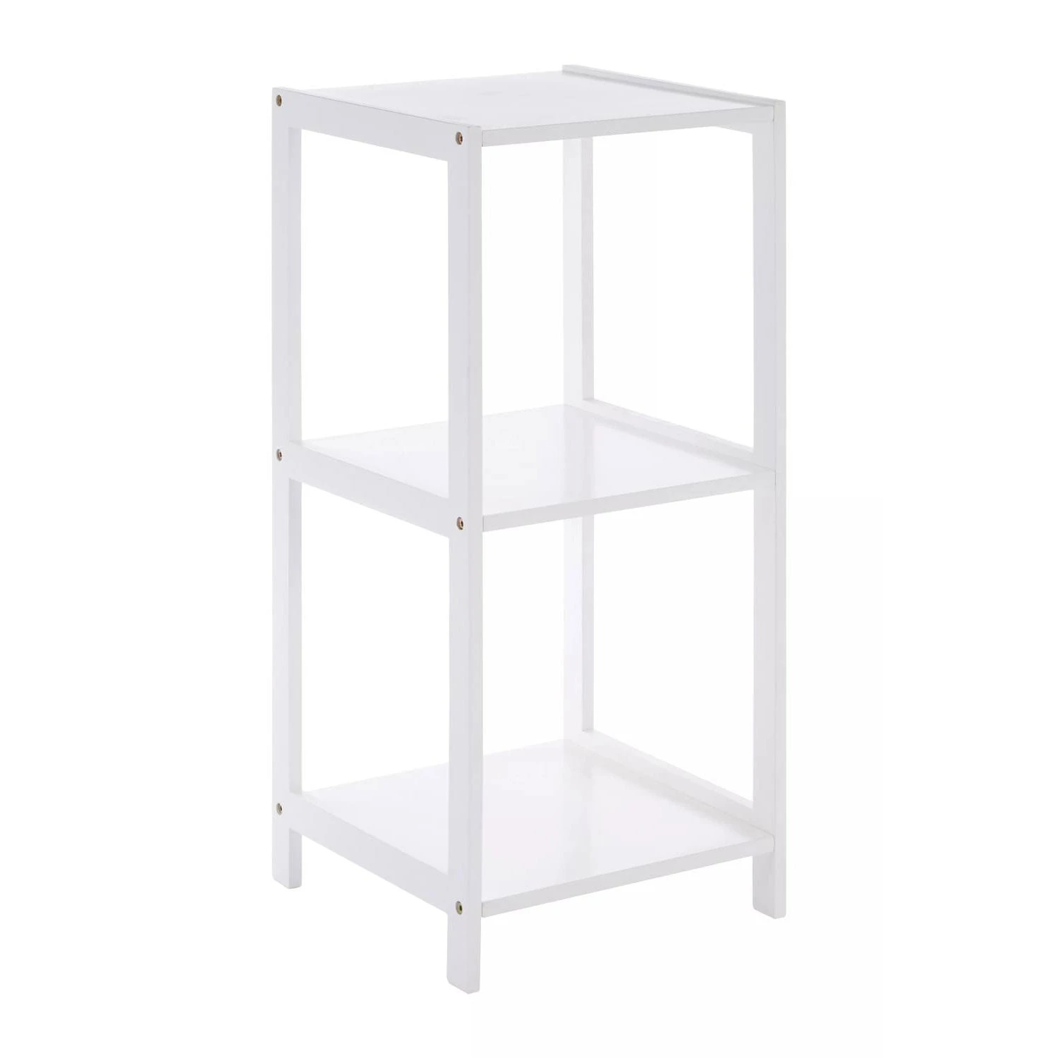 This bathroom shelf unit features a renewable pine wood frame that has a white painted finish. It is completed with three white square shelves of MDF that are securely attached with hardware. The understated tiers complement the clean lined construction of the stand while the crisp white tone of this shelf makes it a chic addition for the bathroom.