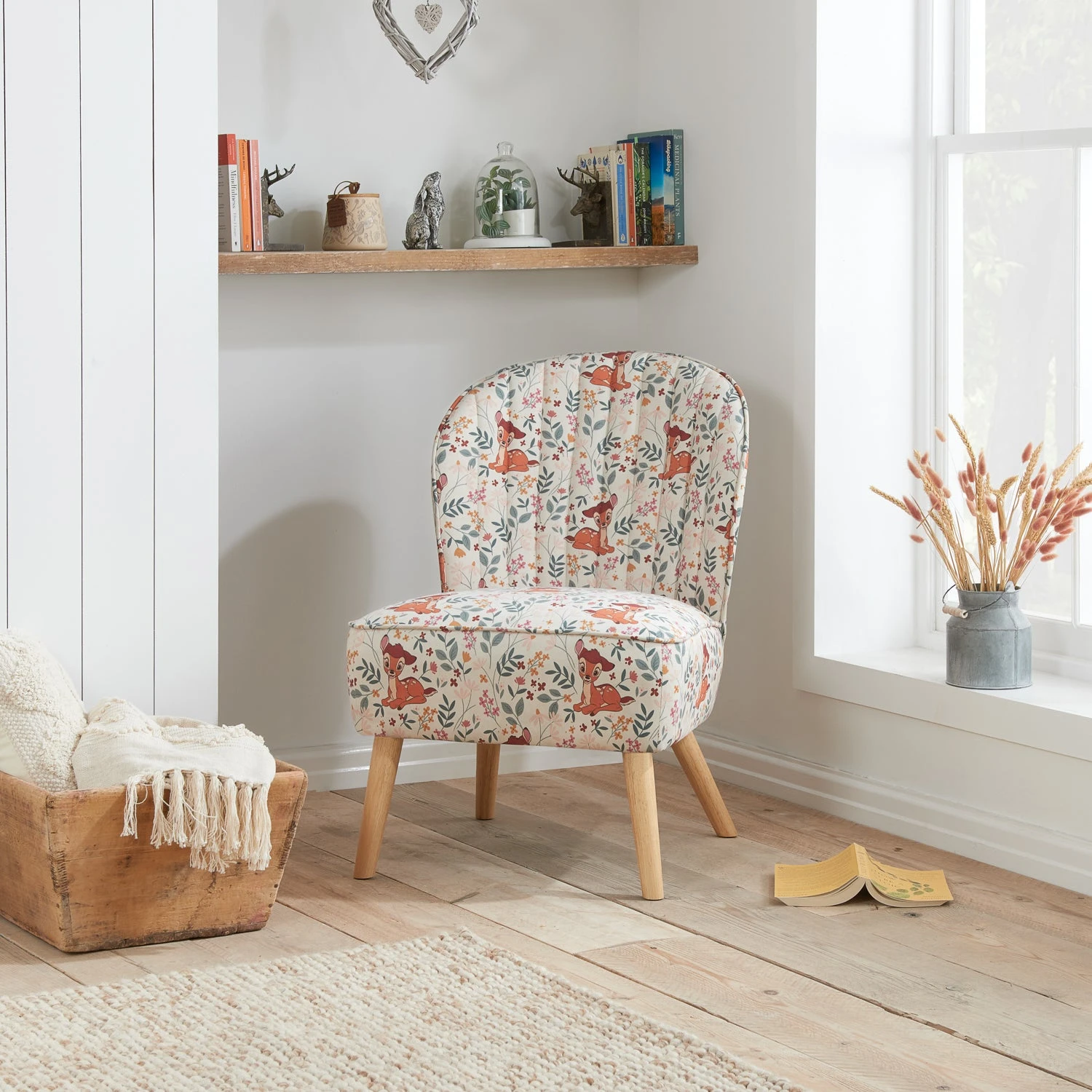 This distinctive Bambi accent chair has a classic design with a contemporary twist that will sit well in a variety of living spaces. This occasional chair features a pleated back featuring the Disney’s iconic Bambi pattern. The maximum weight load for this chair is 110kg.