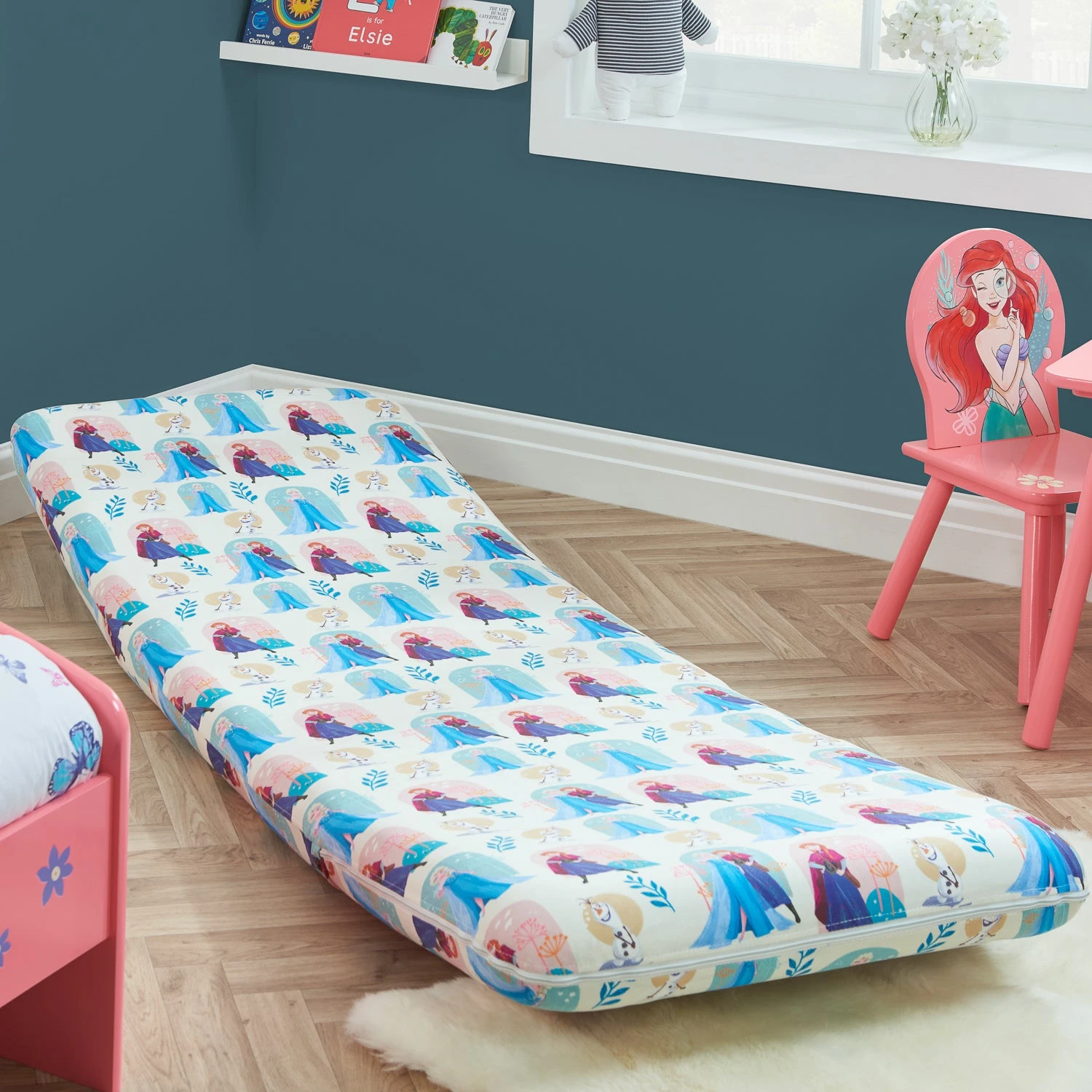 The fold out bed features everyone’s favourite Frozen characters, Elsa, Anna and Olaf. From chair to single bed, you’ll always be prepared for occasional overnight guests.