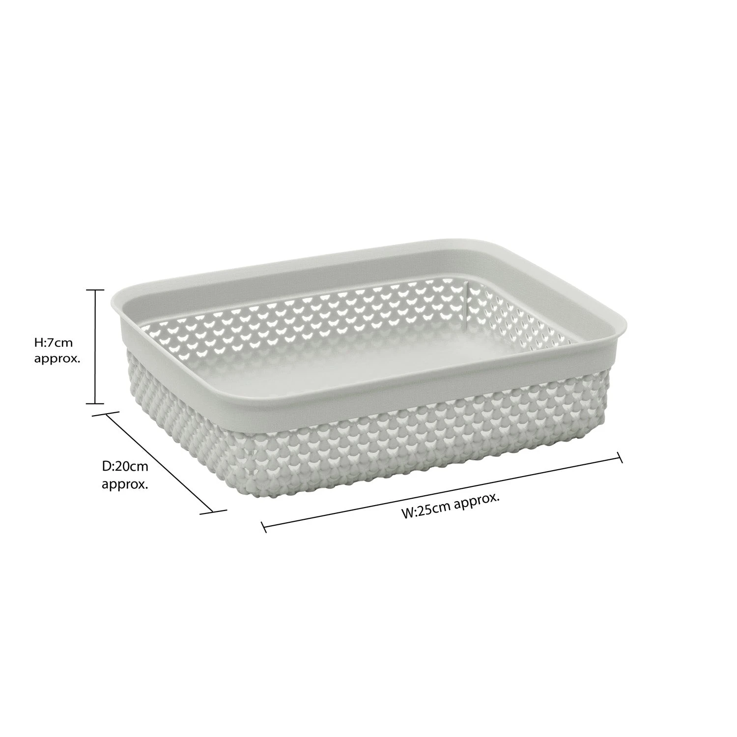 - Size: H:7 x W:25 x D:20cm approx. Capacity: 2.2 litres approx.
