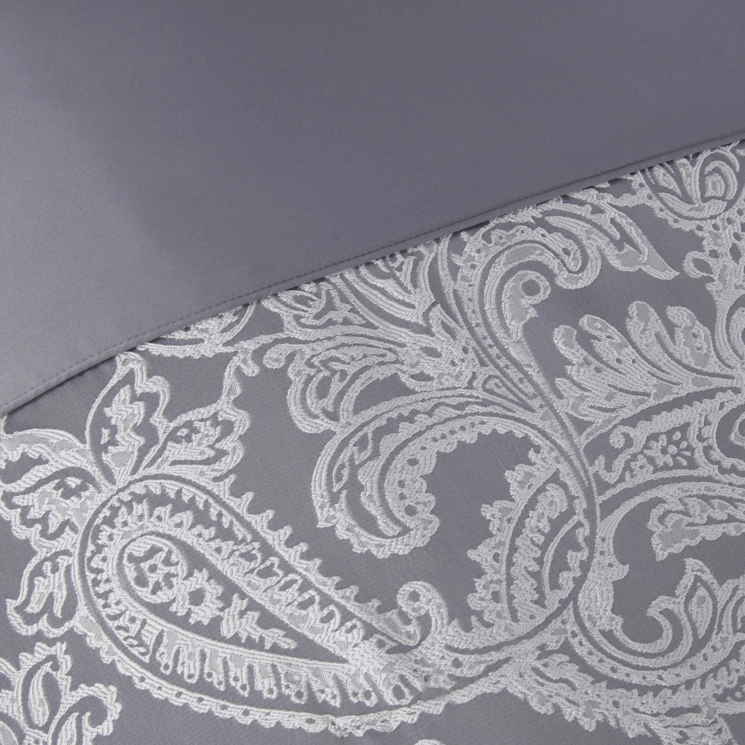 Welcome to the timeless elegance of our Duchess Silver Embellished Jacquard Duvet Set. This exquisite bedding set takes traditional design into the modern era with its luxurious soft sateen and lavish central jacquard paisley pattern. Harnessing an old-world charm that will never be outdated, you’ll find yourself thrilled with this delightful duvet set time after time.