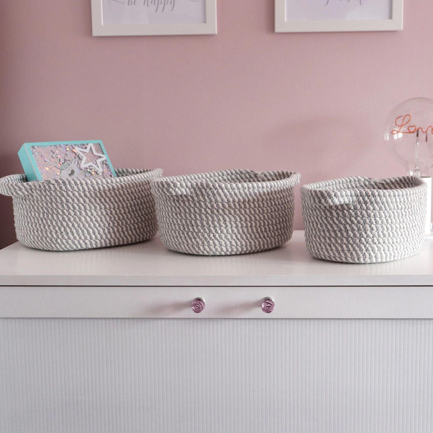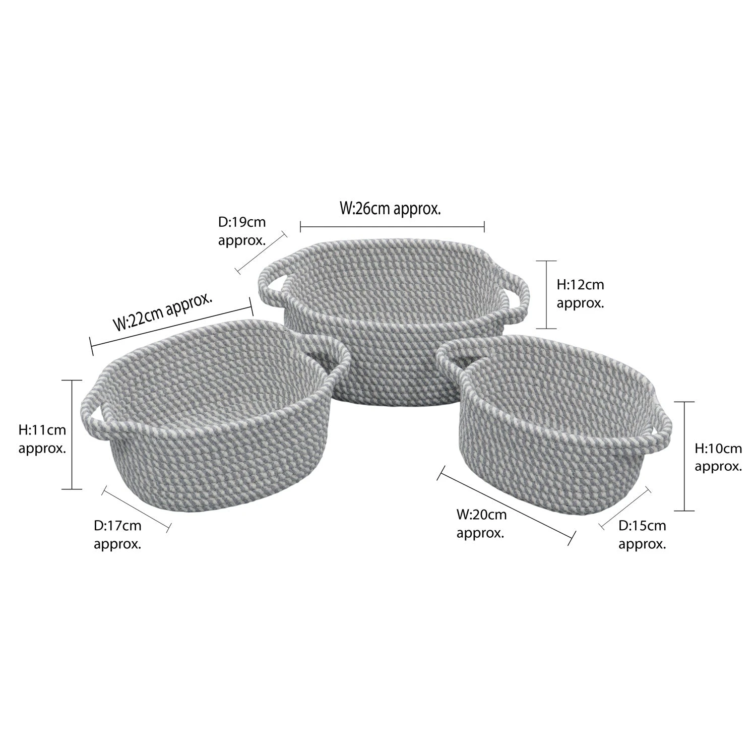 - Complete set of 3 storage baskets to keep your home tidy and clutter free.