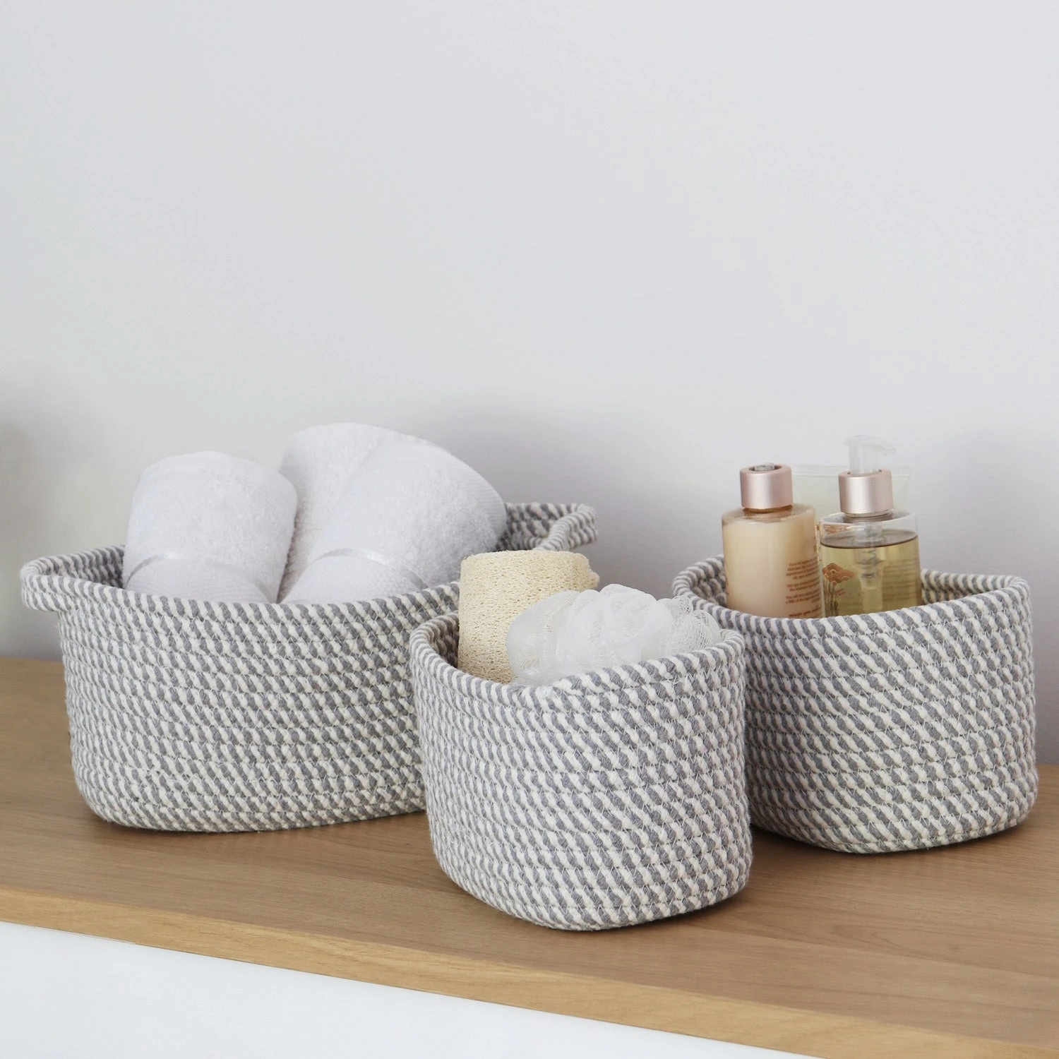 - Complete set of 3 storage baskets to keep your home tidy and clutter free.