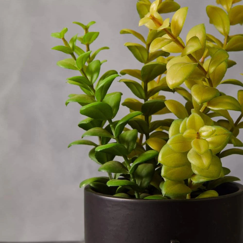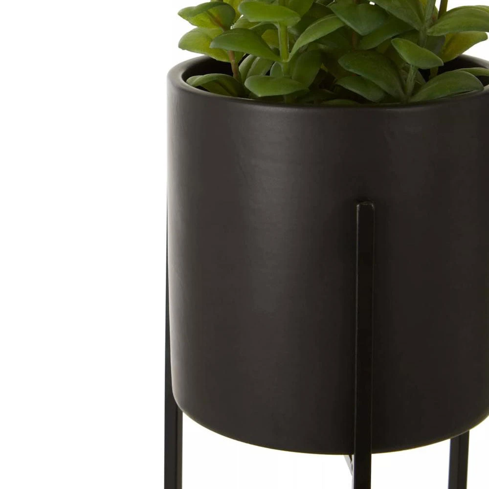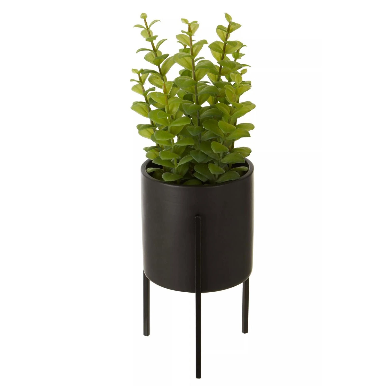This fiori thyme will make an organic statement with its lush green, decorative leaves and texture. The faux concrete pot rests in a black finish iron stand with minimalist legs, giving the design a classic mid-century style.