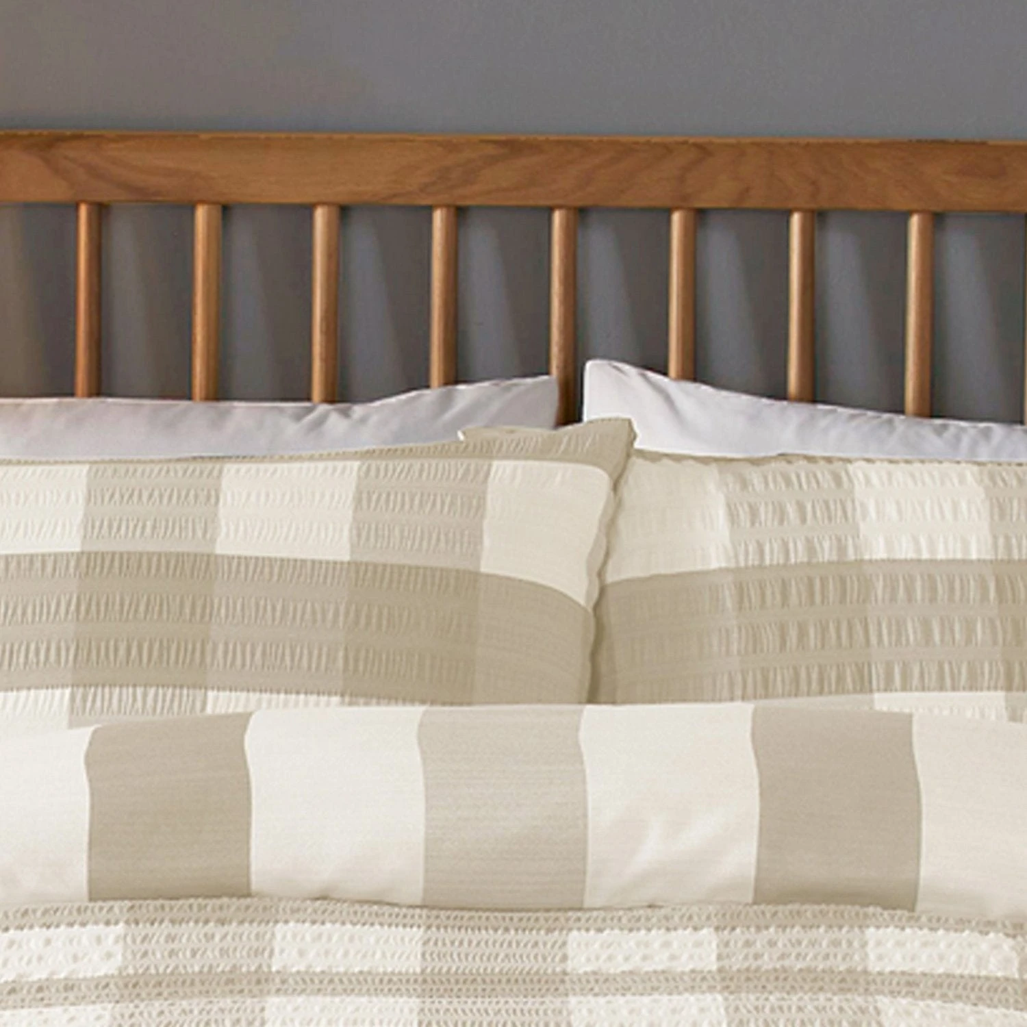 Transform your bedroom with the classic charm of gingham checks on a textured seersucker base.