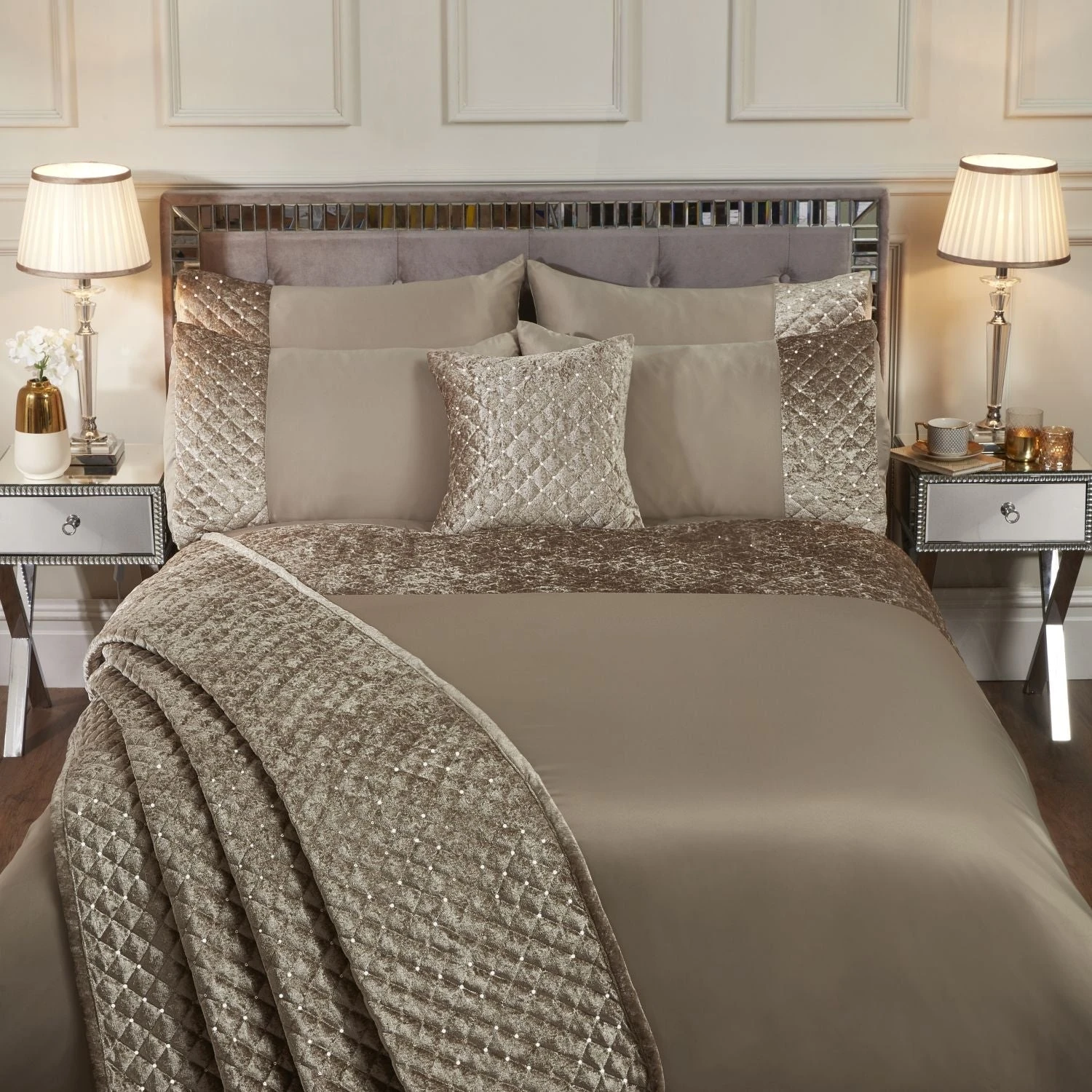 Introducing our Mink Glamour Quilted Sequin Velvet Duvet Set! Are you looking to add a touch of luxe and opulence to your bedroom? This exquisite duvet set will do the trick!
