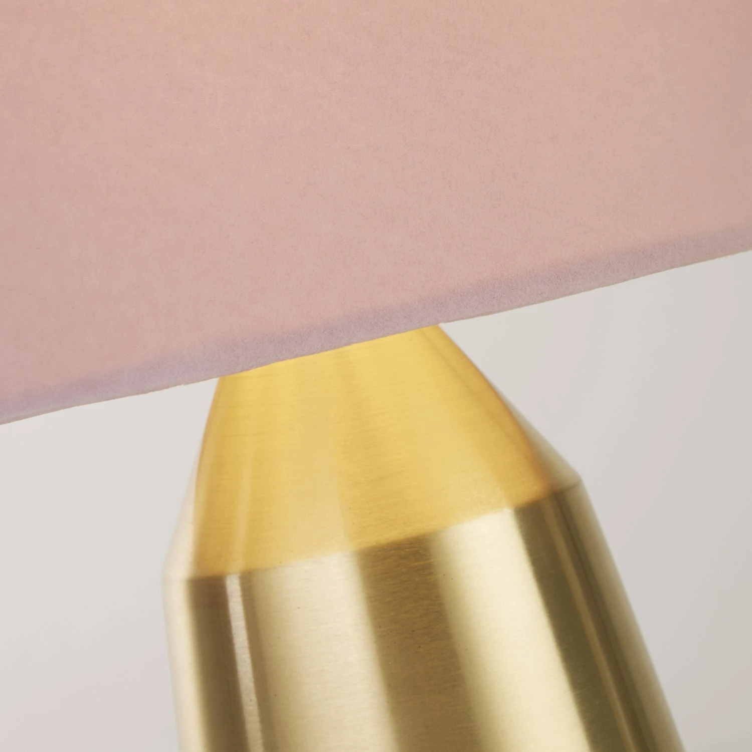 The cylinder base on this table lamp is finished in satin gold base and a luxurious soft blush pink velvet drum shade finishes off what truly is a timeless piece which is perfect for living rooms, bedrooms and halls.