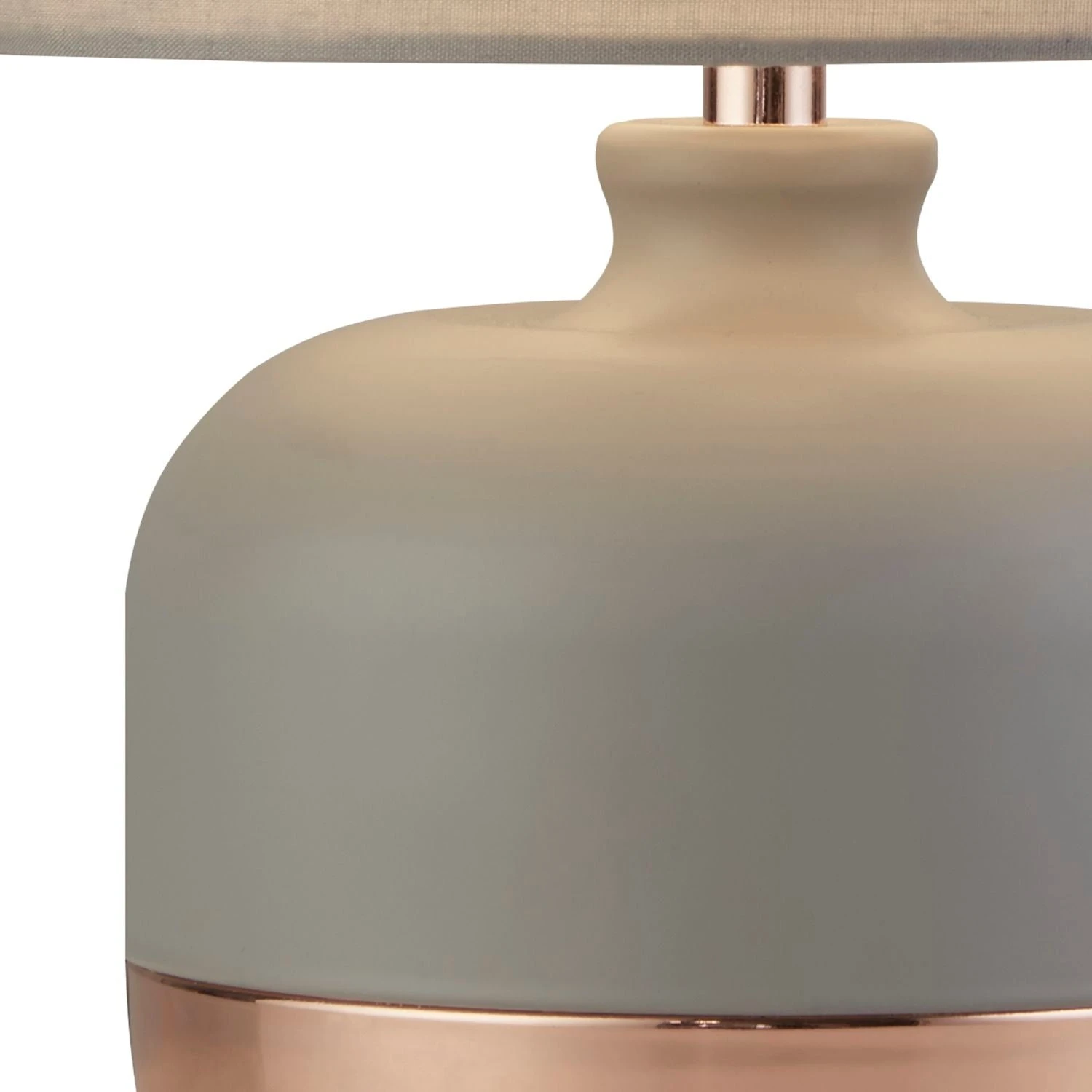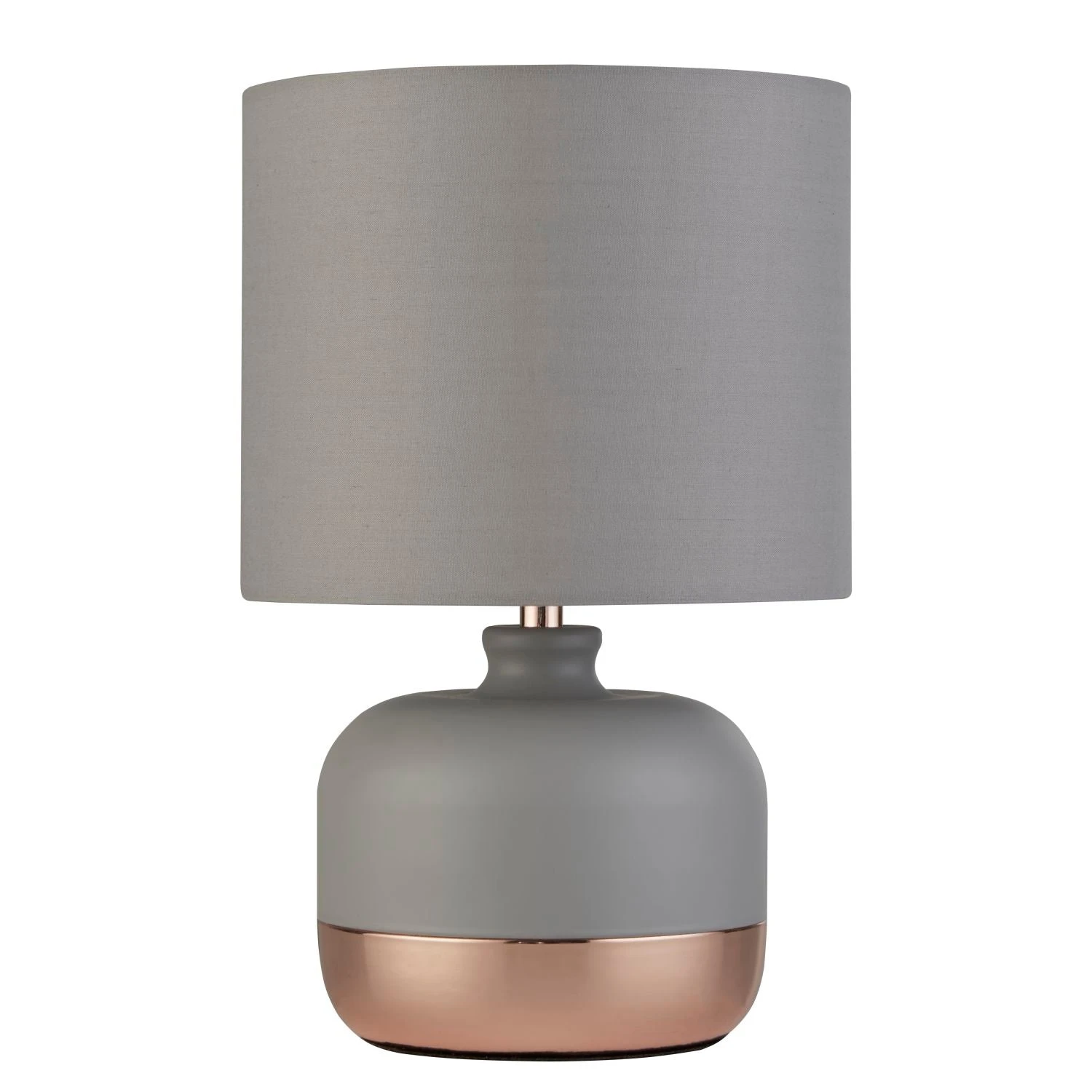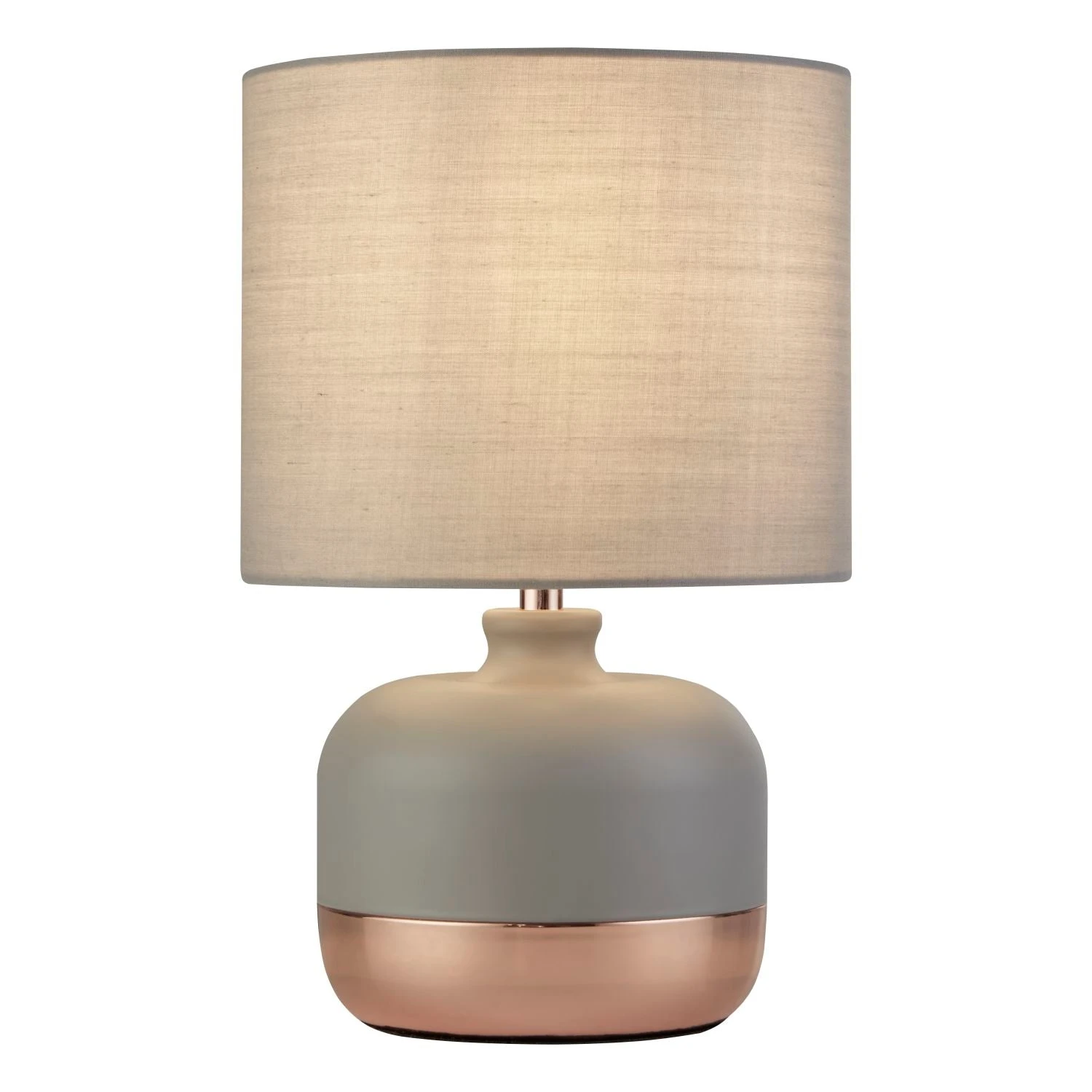 Featuring a sleek grey and copper base and a matching grey shade, this lamp is sure to become the centrepiece of any room it inhabits. Whether you’re looking to brighten up a cosy reading nook or simply add a warm ambiance to your living space, this lamp is the perfect choice.Â