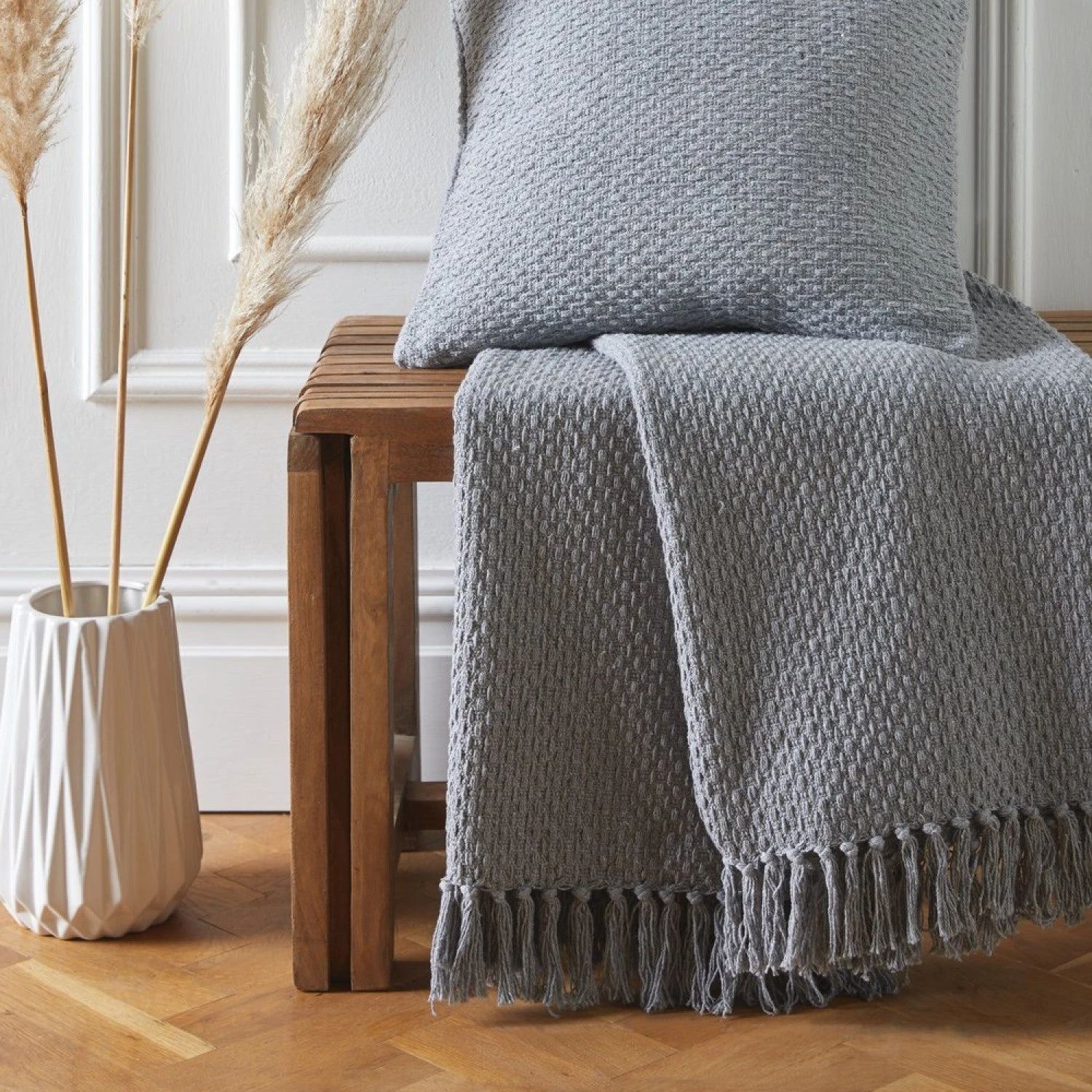 Made from recycled cotton, this oversized Hayden woven throw features a textured weave in on-trend neutral grey. This intriguing basket weaved design throw creates compelling visual textures that make a splash in any contemporary bedrooms.