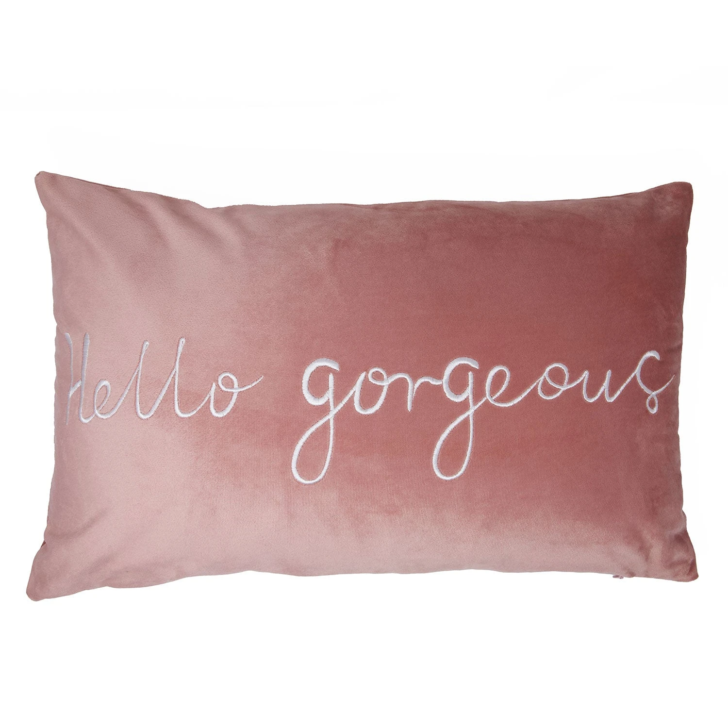 Hello Gorgeous Blush Pink Velvet Cushion (30cm X 50cm)