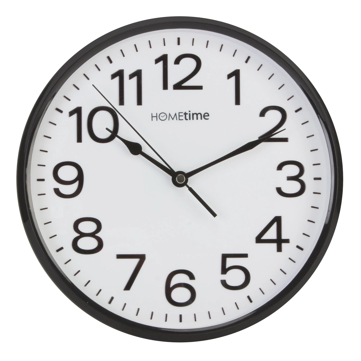 The classic, black cased wall clock has an understated design that will look great in any home. It features a crisp, white clock face with an easy to read Arabic dial and an outer minutes index.