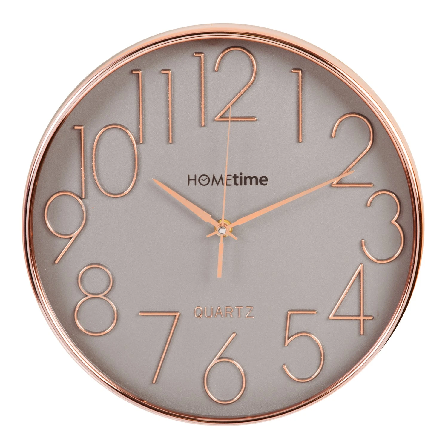 This Hometime wall clock with matte grey face and raised rose gold dial is the perfect addition to any stylish, modern home.