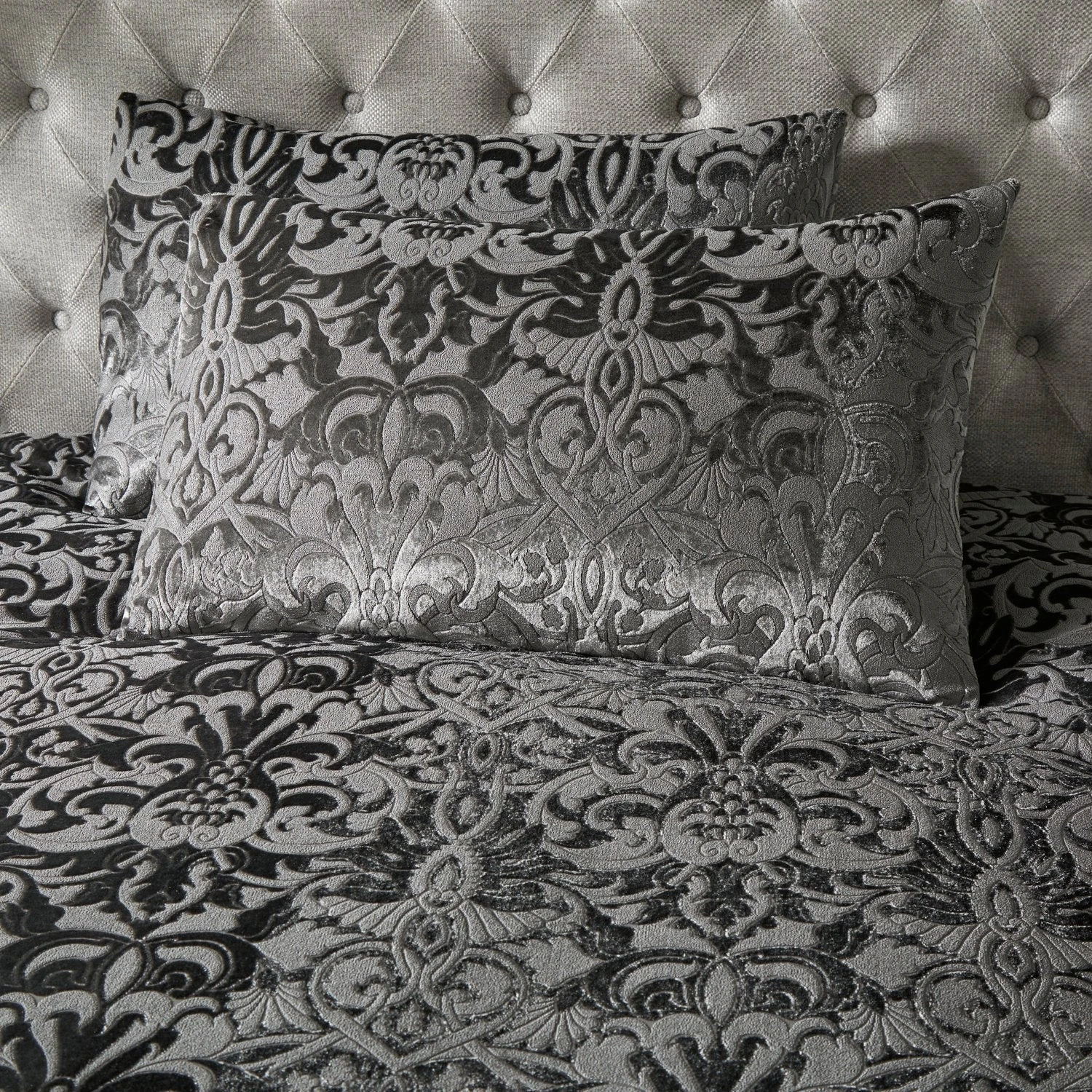 Indulge in the luxurious beauty of this season’s hottest colour palette and masterful damask pattern with this sumptuously soft velvet duvet cover set.