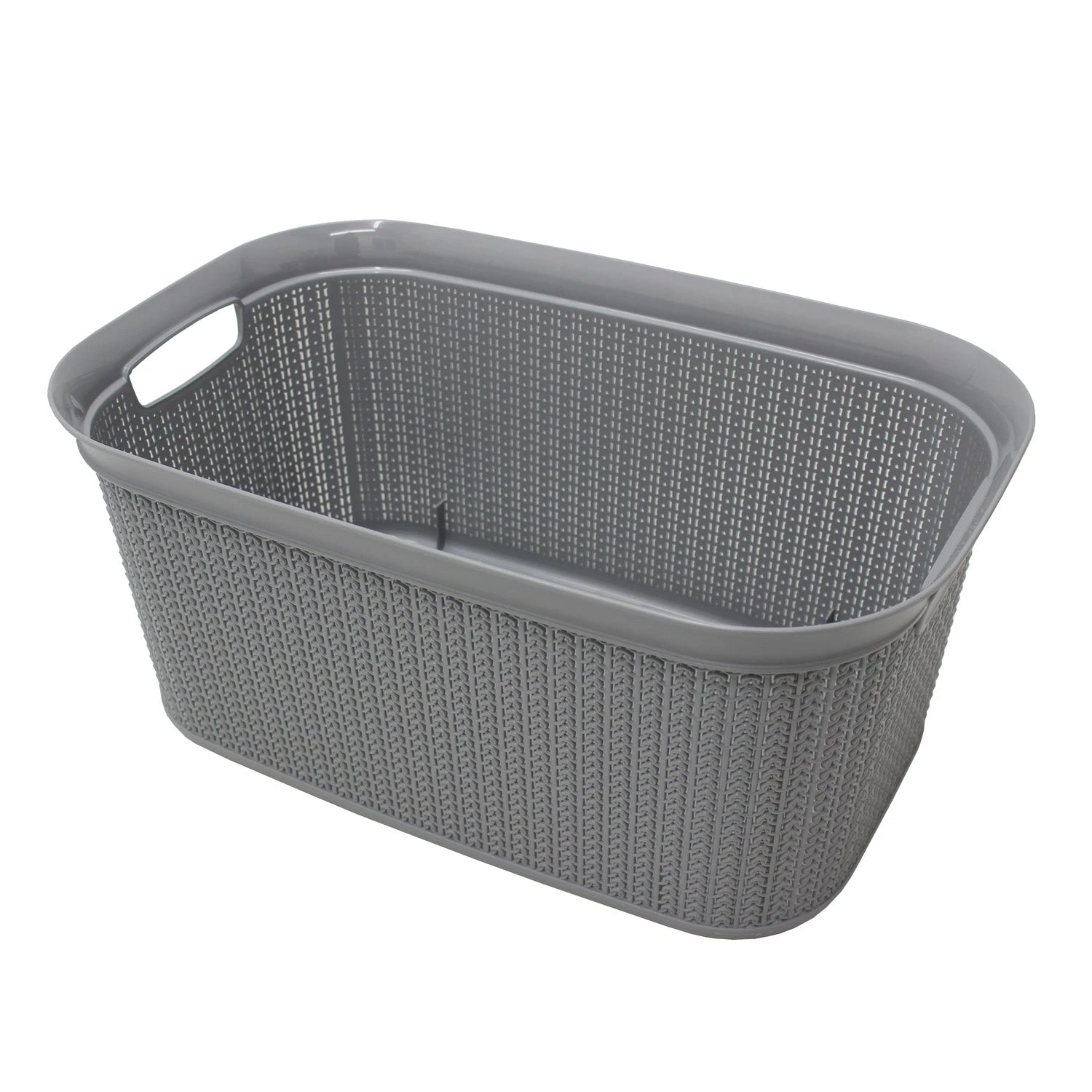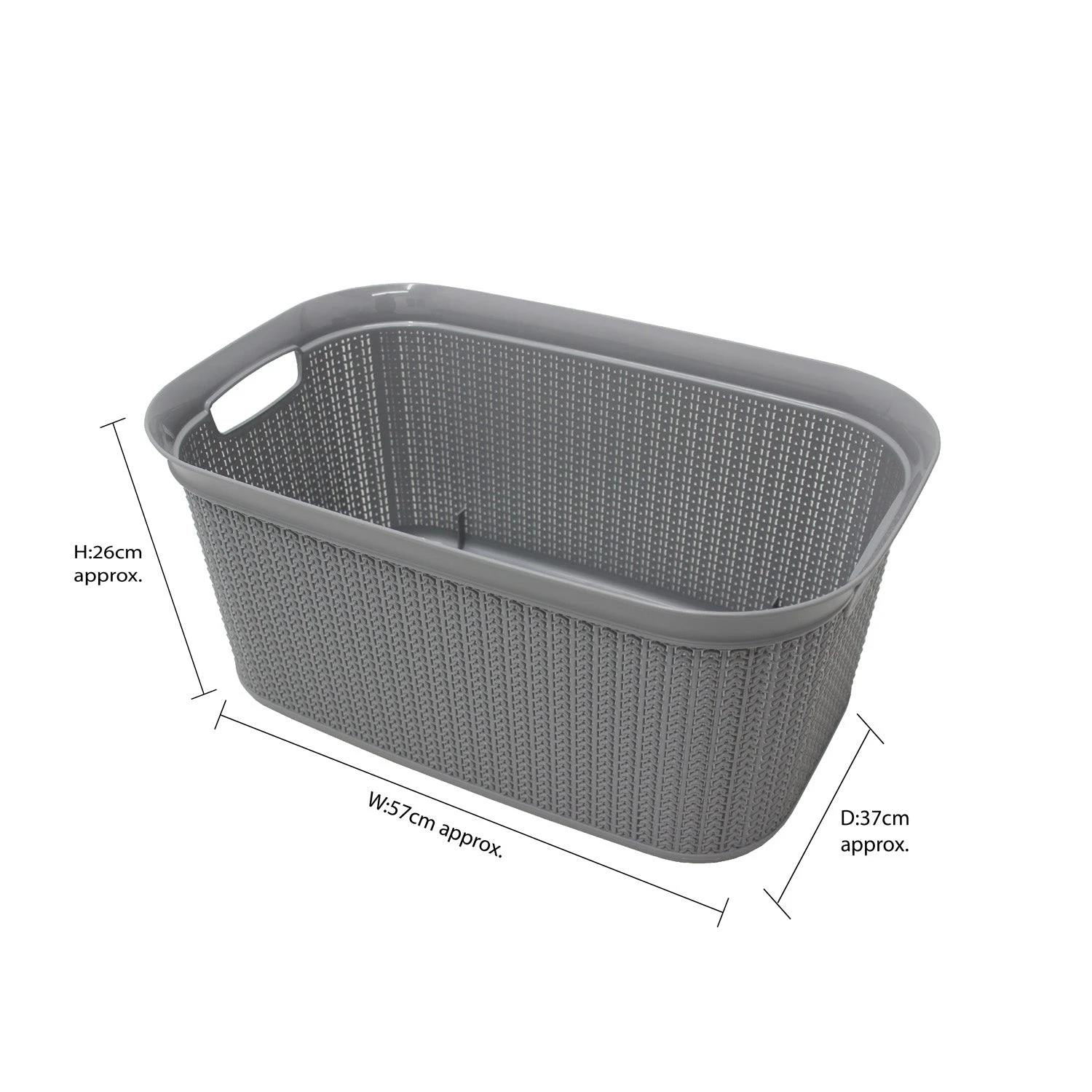 This laundry basket features a knitted loop design in the colour grey to complement any home decor.Â