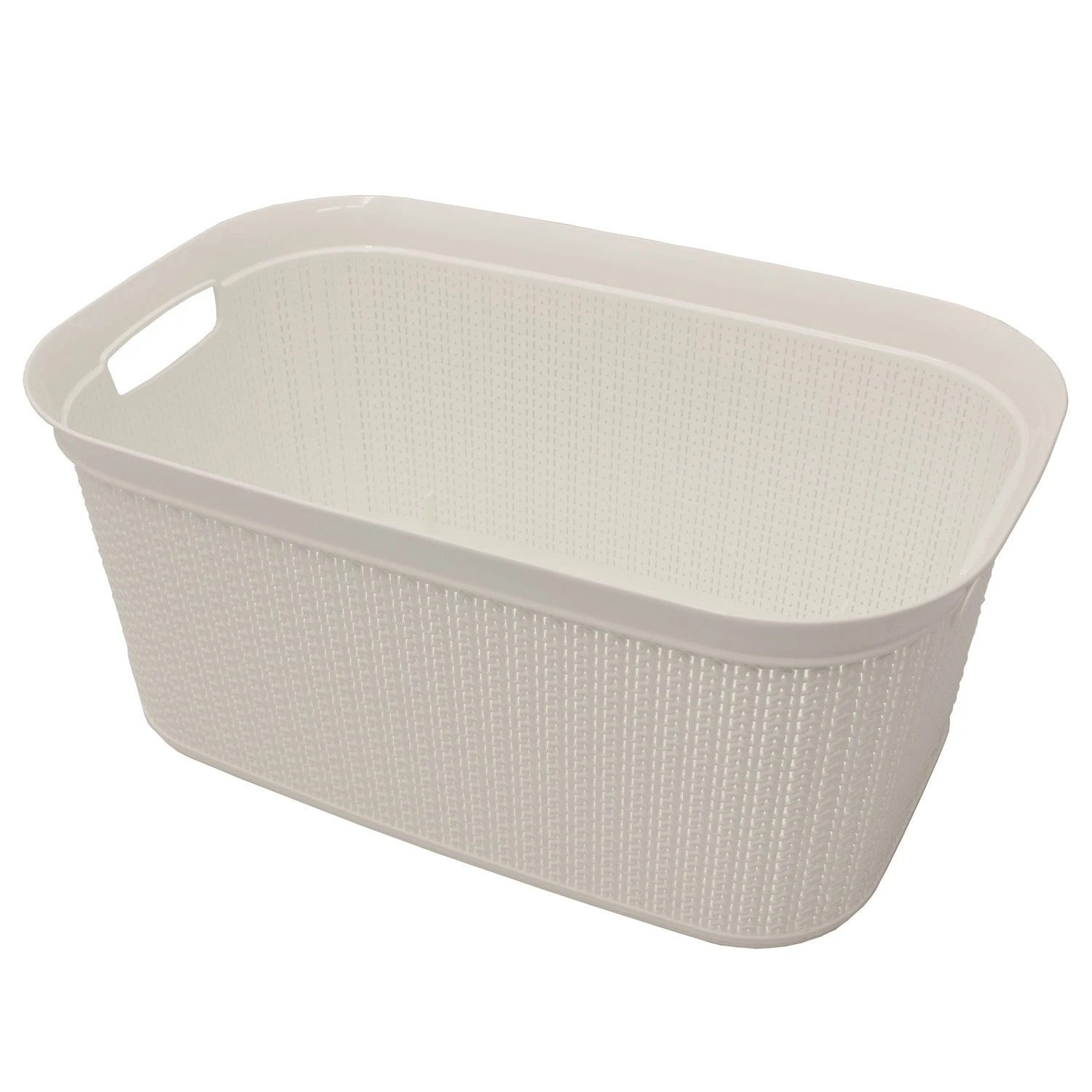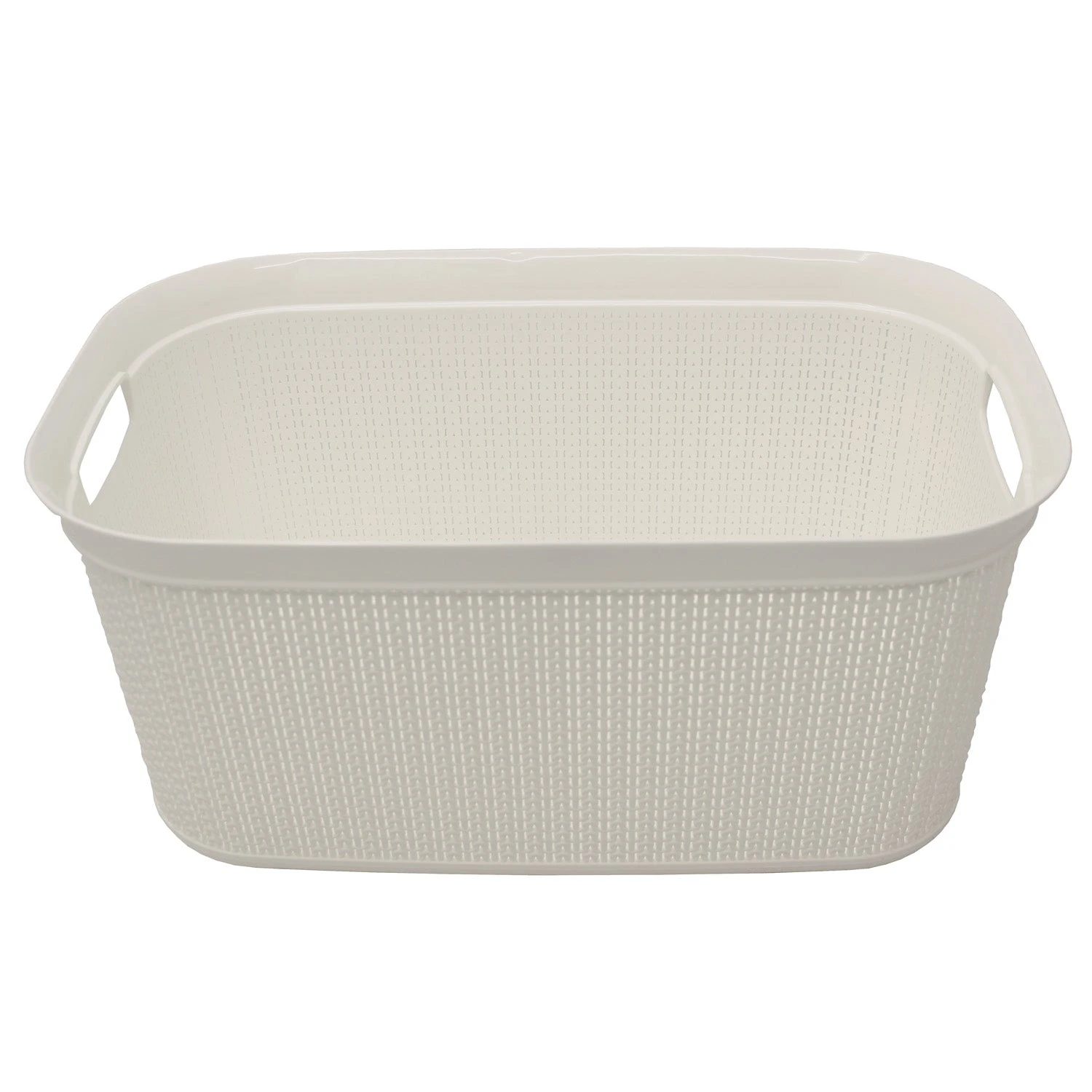 This laundry basket features a knitted loop design in the colour ivory white to complement any home decor.