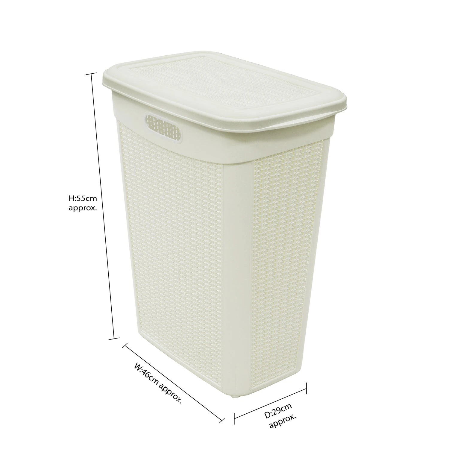 - Size: H:55 x W:46 x D:29cm approx. (incl. lid) Capacity: 43 litres approx.