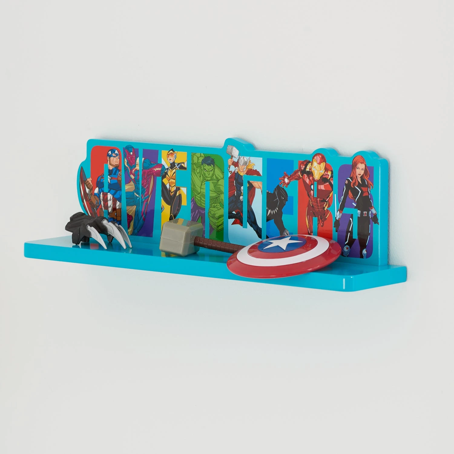 This is a must have shelf for all Marvel Avengers fans. Featuring all of your favourite Superheroes, this Avengers shelf is the perfect addition to any child’s room.