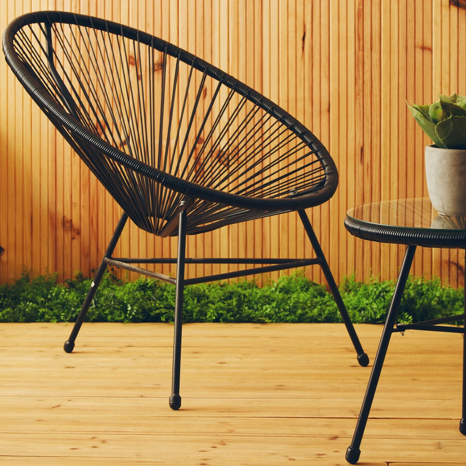 This patio set is a modern, unconventional take on classic. It provides endless comfort, with its black steel base and rattan rope construction. Featuring a black gradient design, this set adds a modern twist to outdoor spaces.