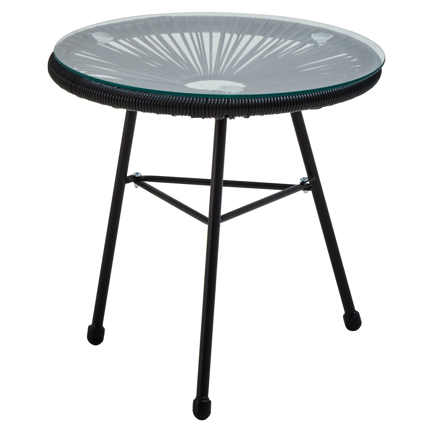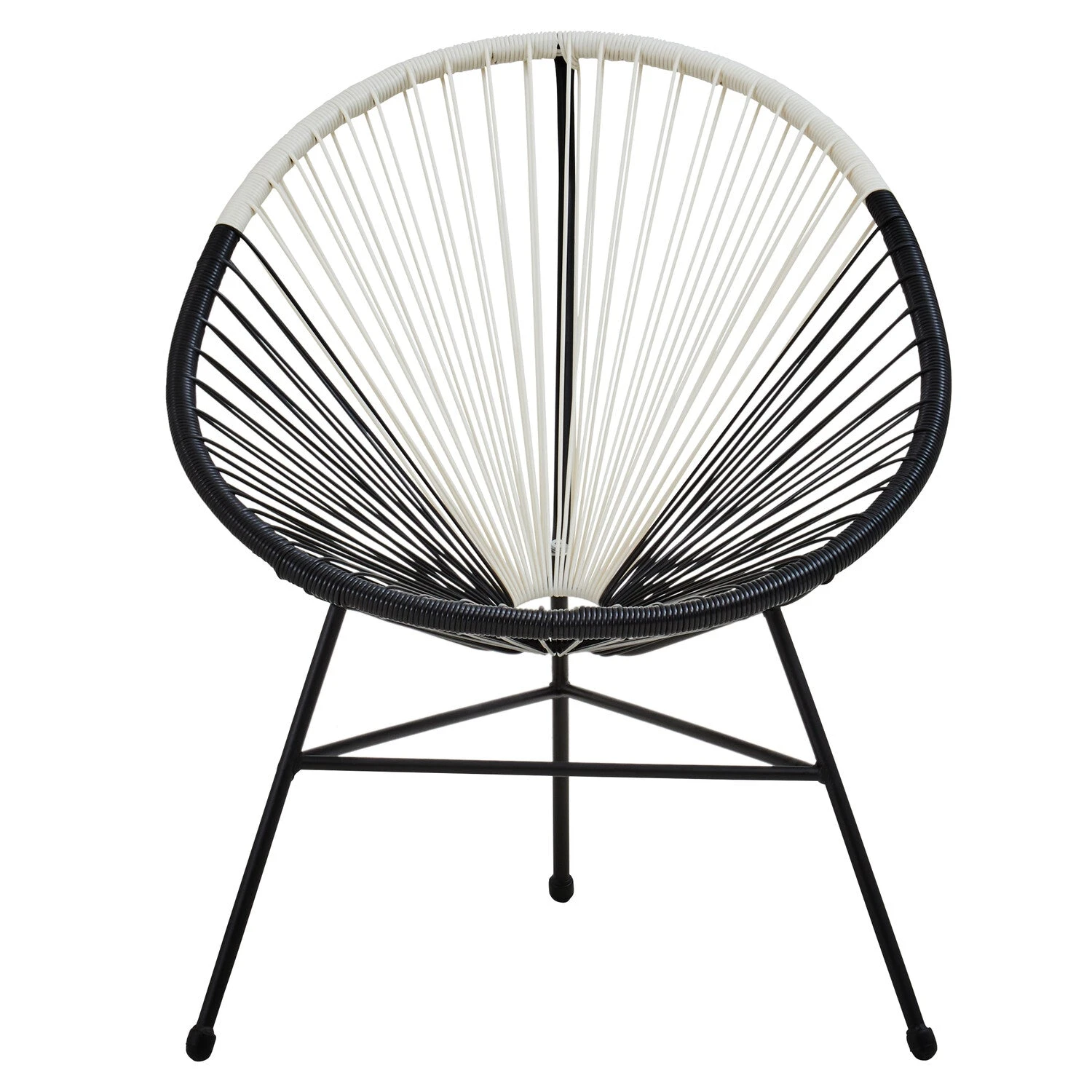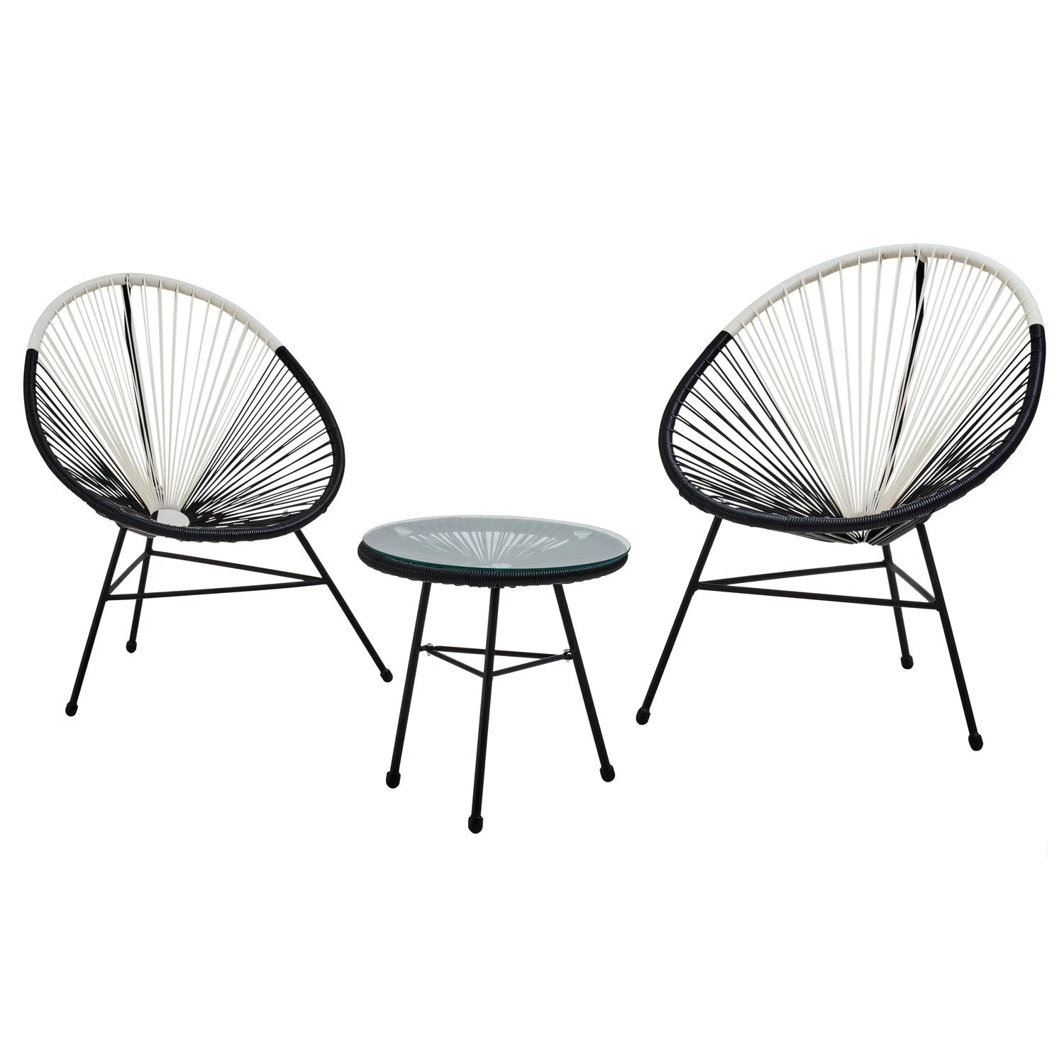 This patio set is a modern, unconventional take on classic. It provides endless comfort, with its black steel base and rattan rope construction. Featuring a dual tone gradient design, this set adds a modern twist to outdoor spaces.
