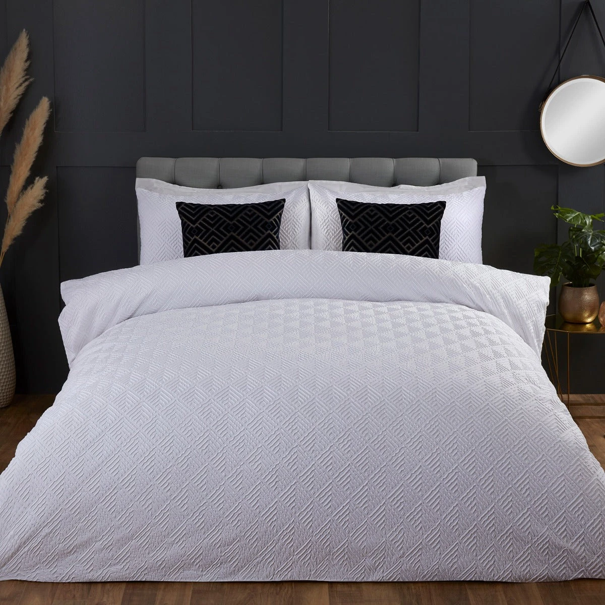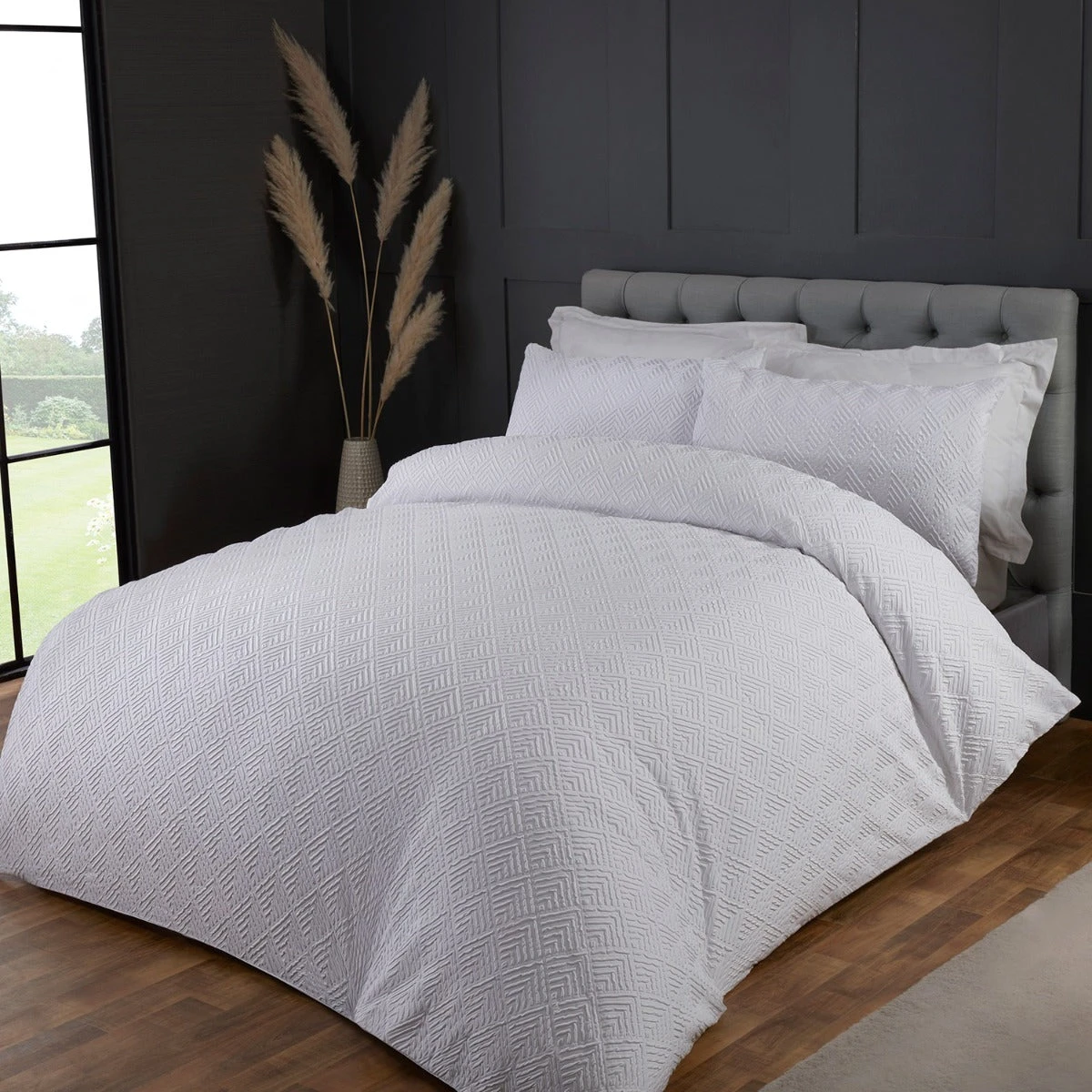 Add a touch of sophistication to your bedroom with this timeless embossed design. Presented in a crisp clean white, this duvet set sits elegantly on the bed and offers a supersoft durable finish.
