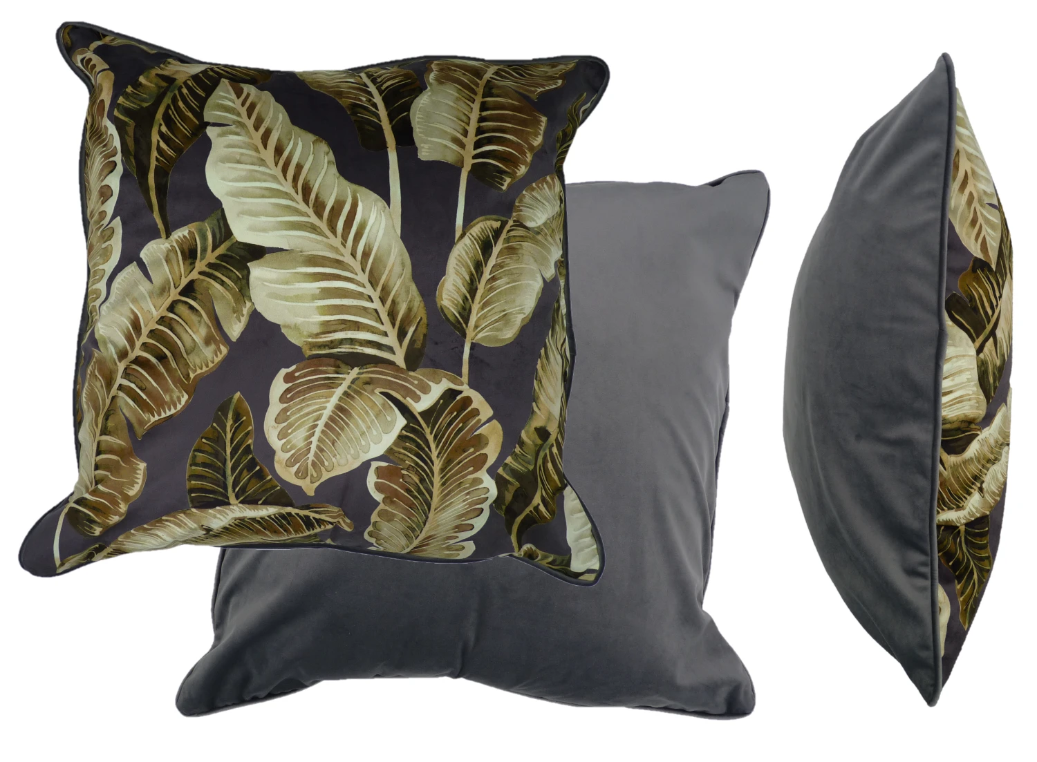 Nikabar Grey Pepperpod Tropical Leaf Velvet Cushion (60cm X 60cm)