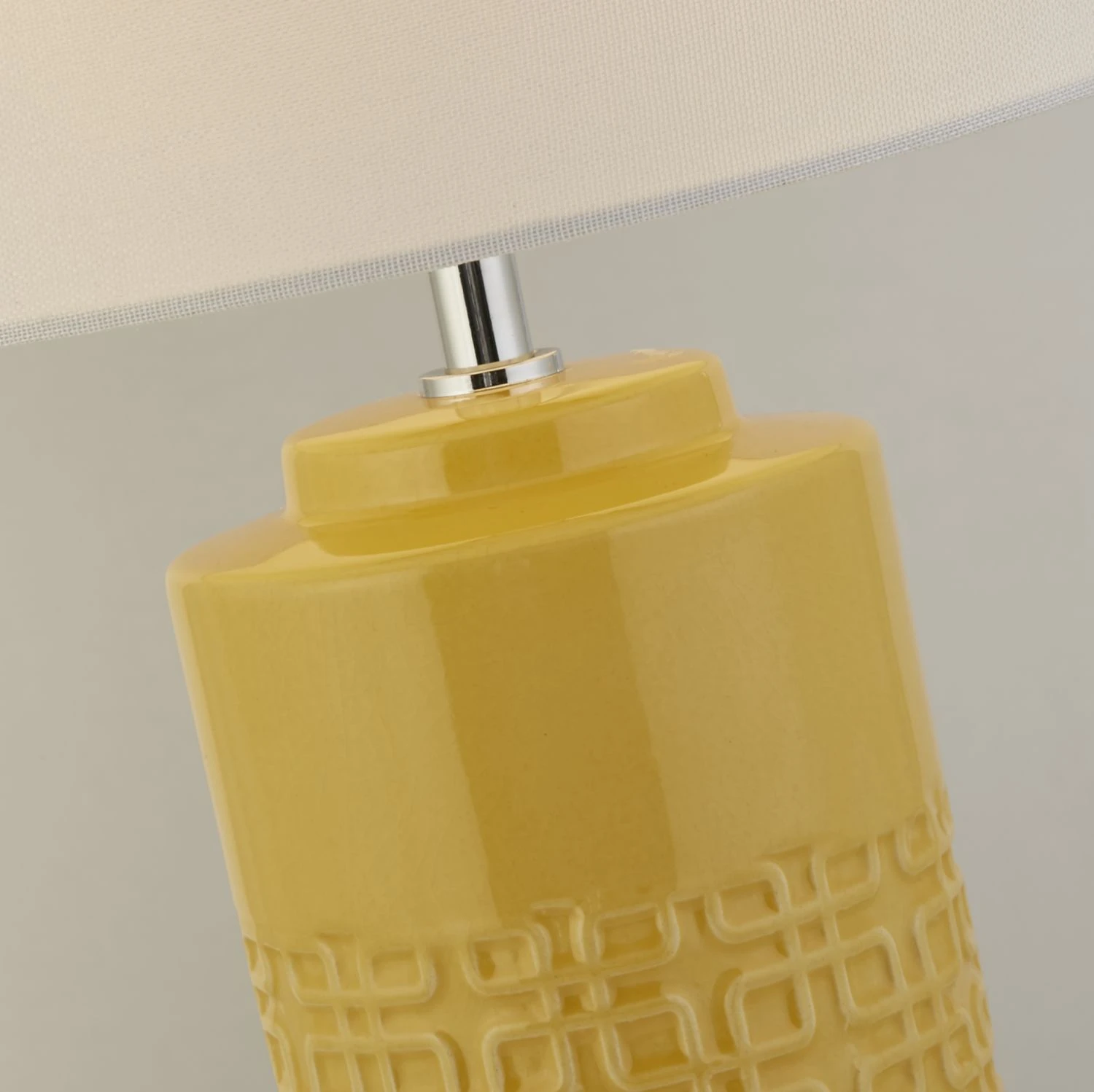 Brighten up your living space with our elegant ochre table lamp! This trendy and stylish ceramic lamp is the perfect way to add a pop of refreshing colour to your home.