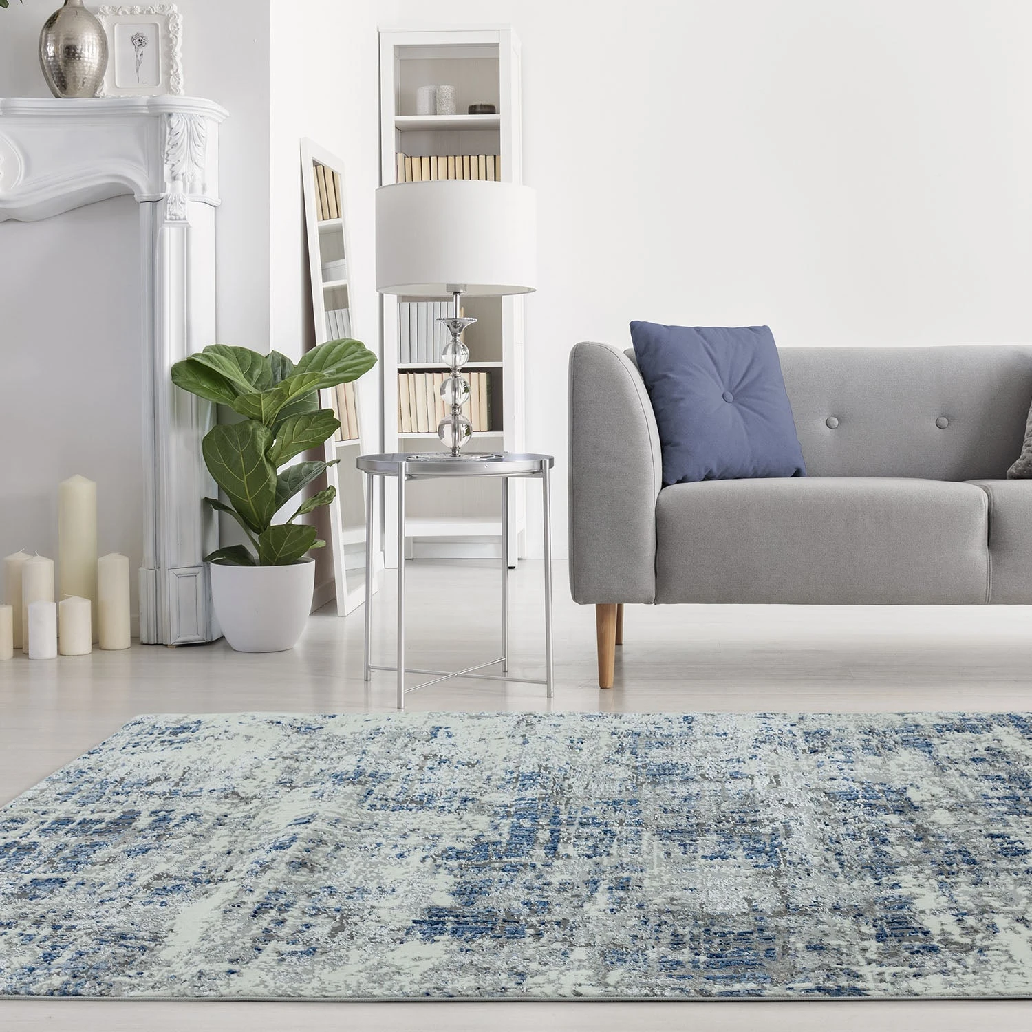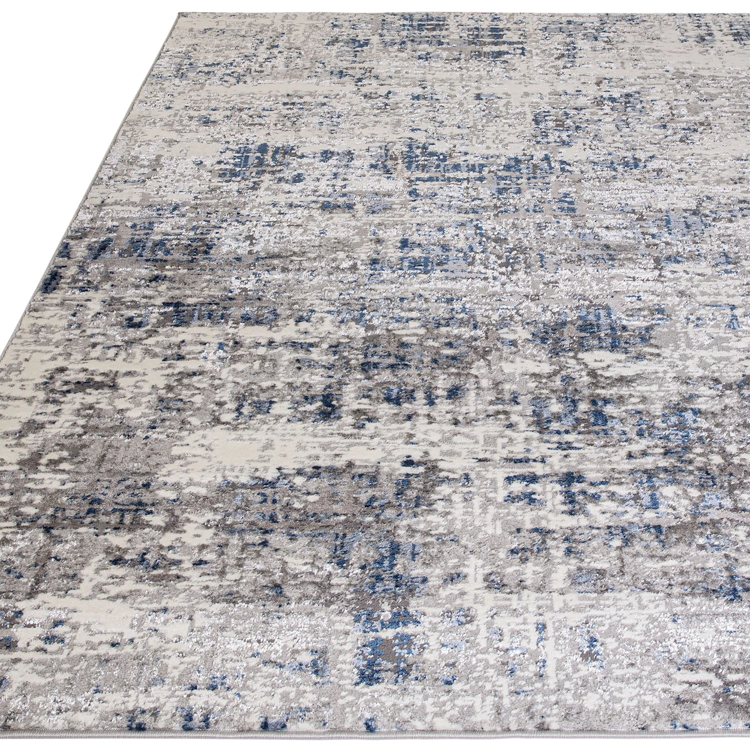 This Abstract rug is an ideal partner to both contemporary and more traditional interior styles. Machine-woven in Turkey, the intricate design showcases an elegant combination of neutral grey and cream yarns interspersed with sapphire accents.