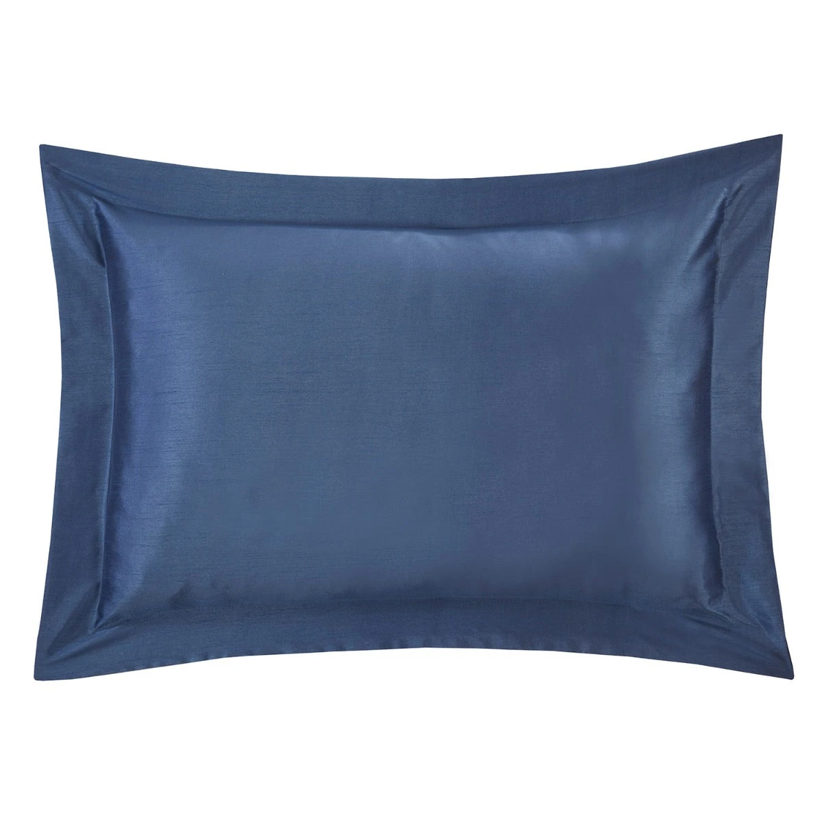 These plain faux silk oxford pillowcases in chambray blue are designed to be paired with their coordinating housewife pillowcases for a statement bedroom look. The pillowcases have a coordinating duvet set along with a wide range of matching accessories including a throw with corner tassels, a boudoir cushion, a square cushion with corner tassels and housewife pillowcases. Combine all of the elements to create a beautiful and elegant statement look in your bedroom.