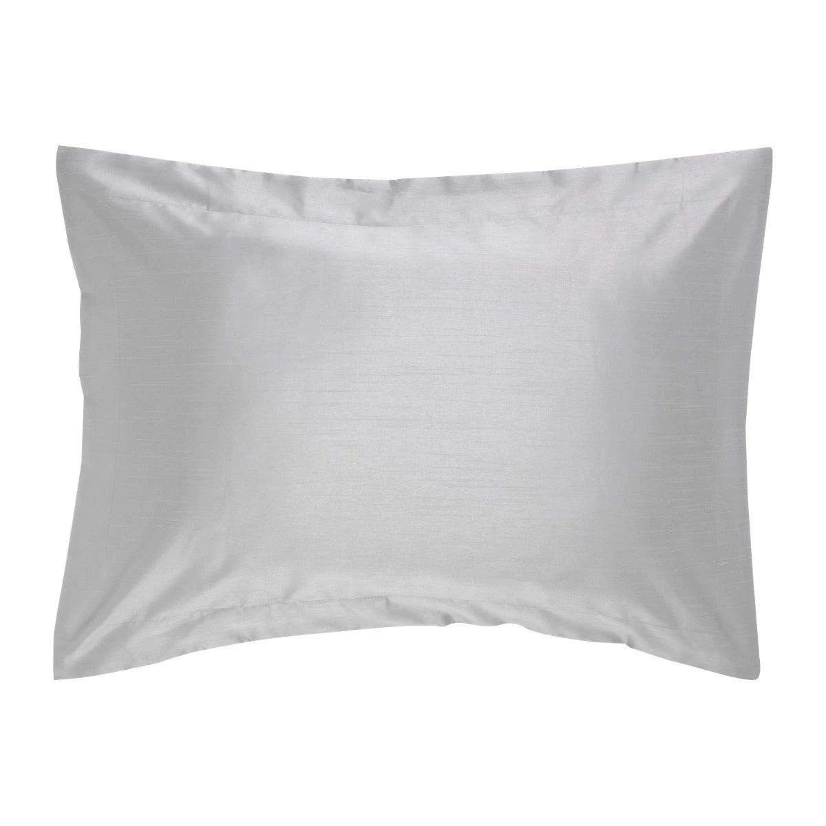 These plain faux silk oxford pillowcases in silver are designed to be used with their matching housewife pillowcases to create a statement bedroom look. The pillowcases have a coordinating duvet set along with a wide range of matching accessories including a boudoir cushion, throw with corner tassels, square cushion with corner tassels and housewife pillowcases. Combine all of the elements to create a beautiful and elegant statement look in your bedroom.