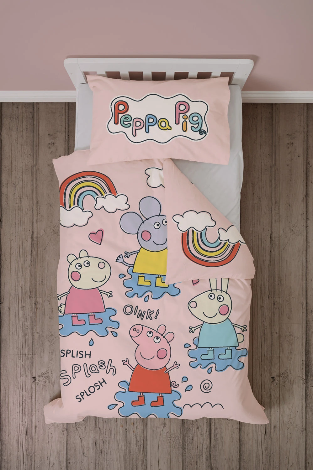 Rainy days make the best puddles, and Peppa and all her friends makes the best junior duvet set. Your little piglet will be dreaming of playing in the rain with Peppa and friends with this duvet set! Snort snort!