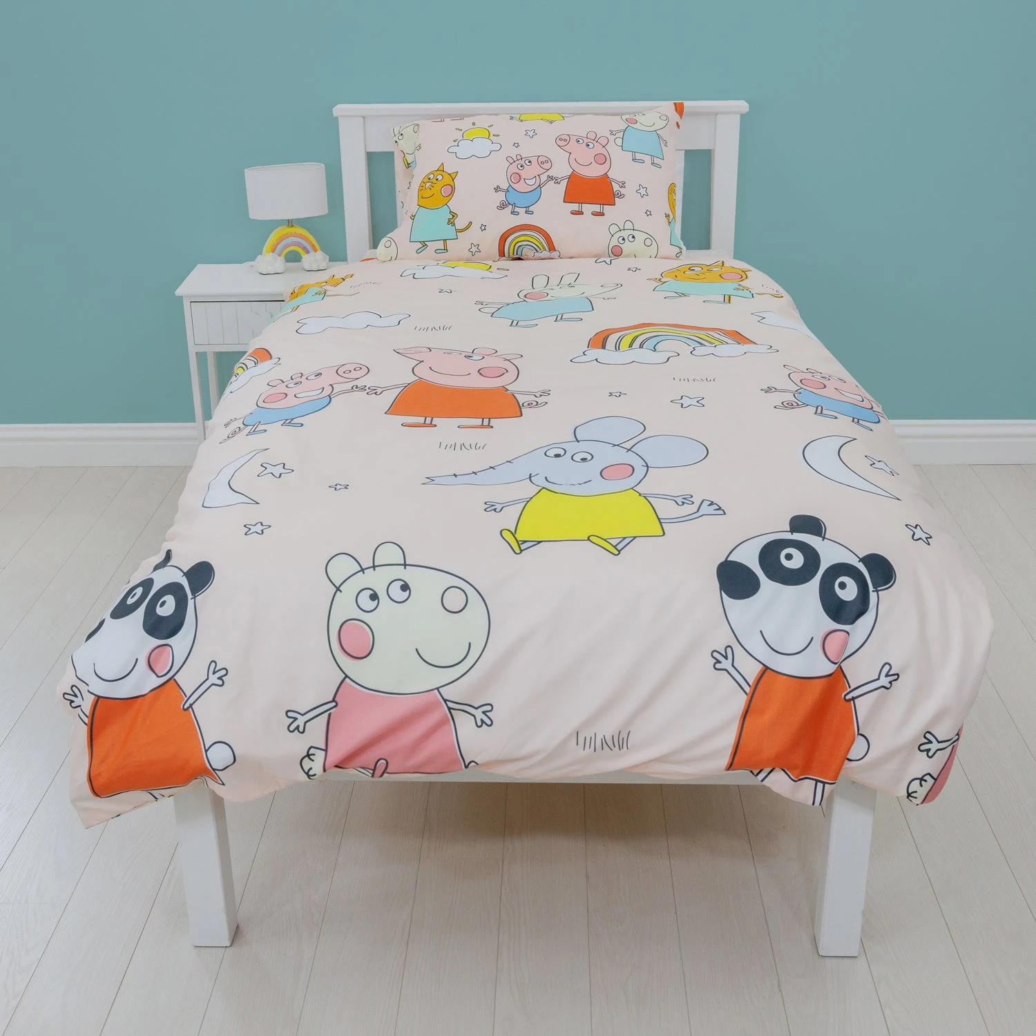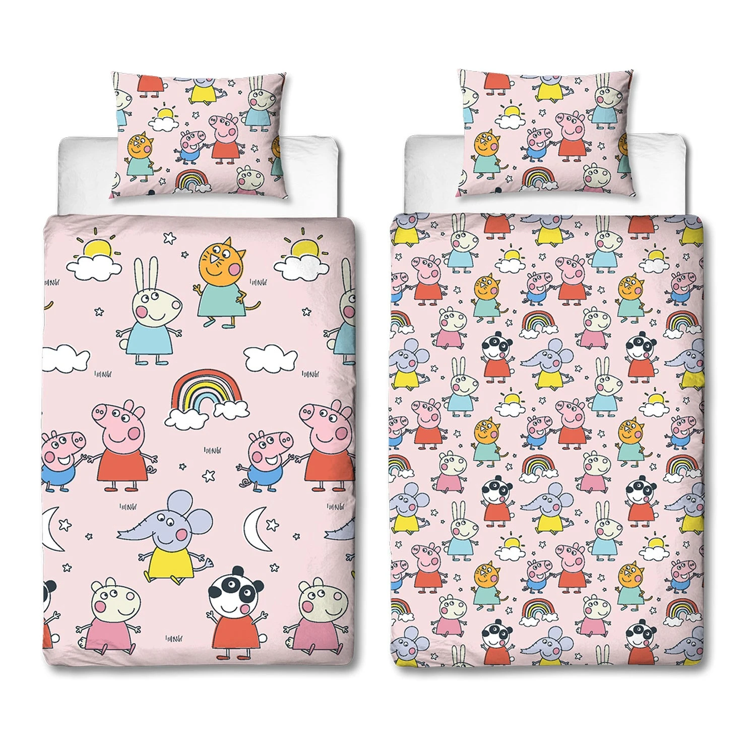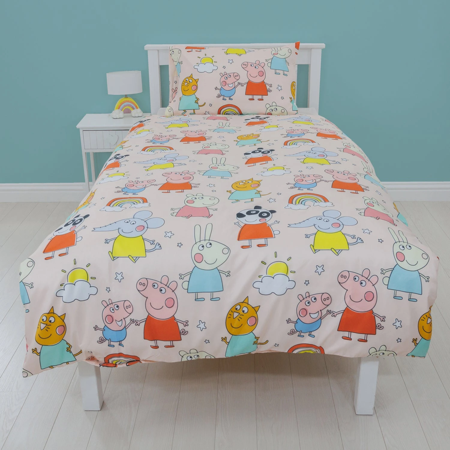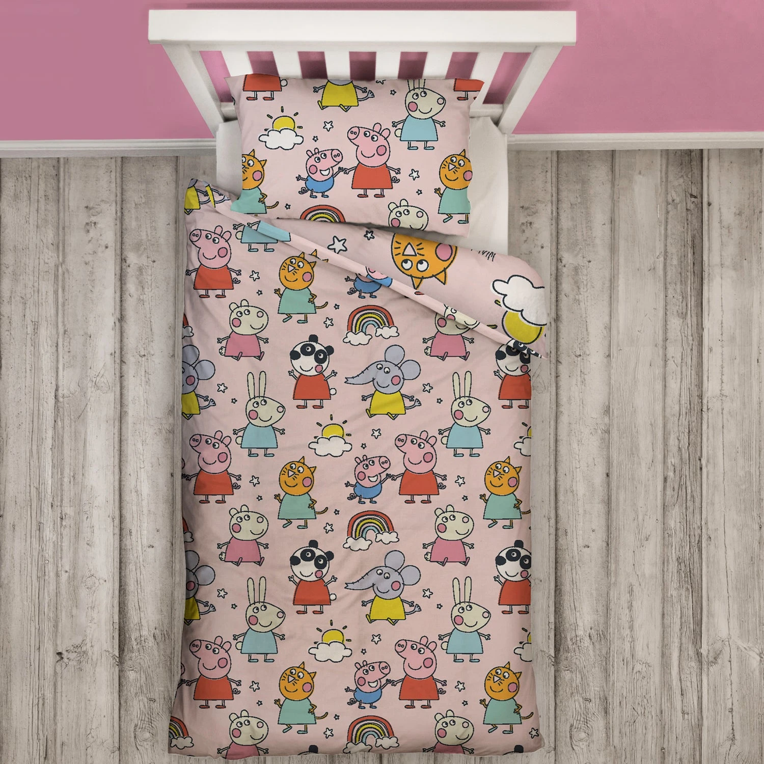Peppa Pig and all her friends are here to make your little one rush off to bed with this officially licensed duvet set. This pink duvet set will give our little piglet the sweetest dreams surrounded by all their favourite Peppa Pig characters in a repeating pattern.