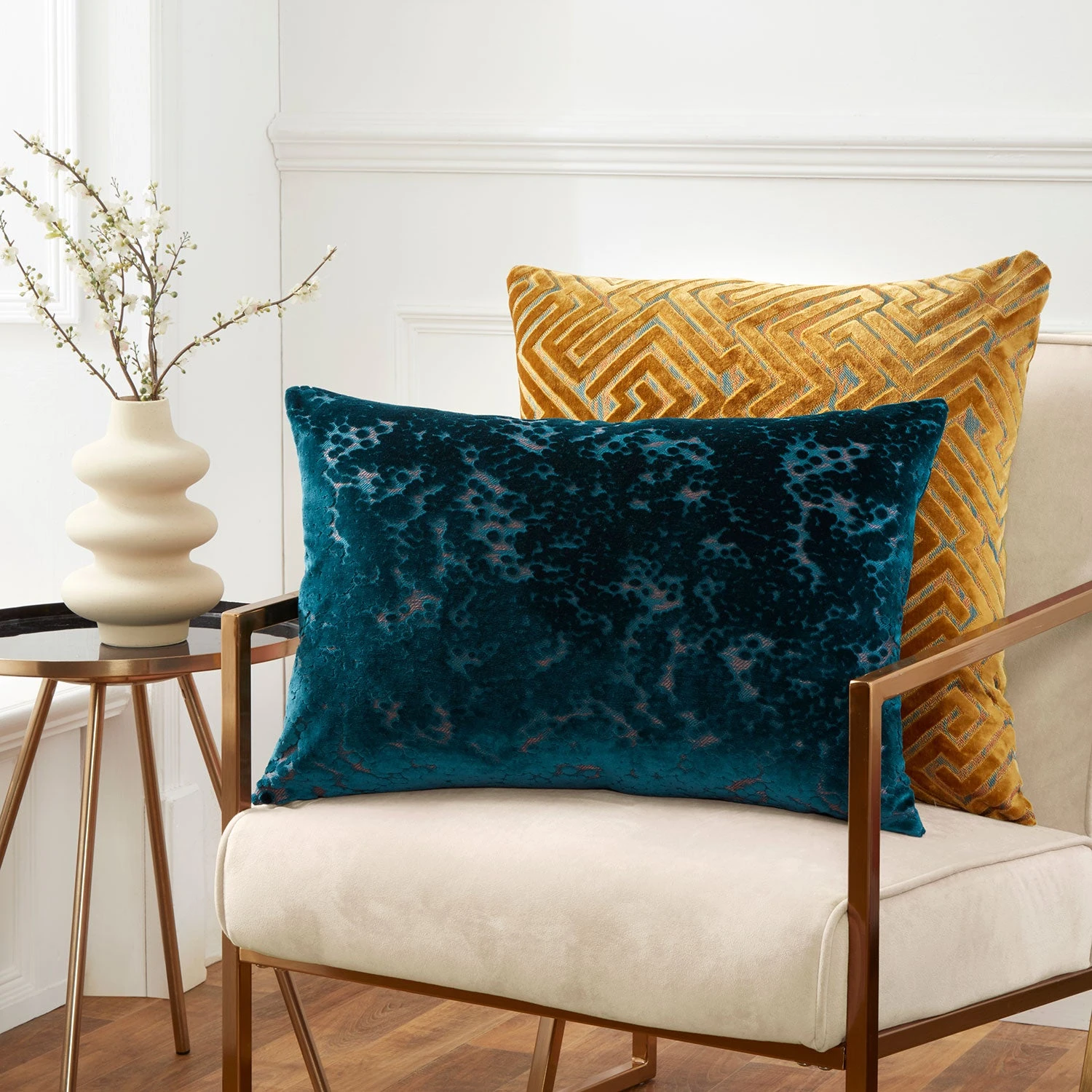 Petra Teal Cut Velvet Boudoir Cushion (40cm X 60cm)