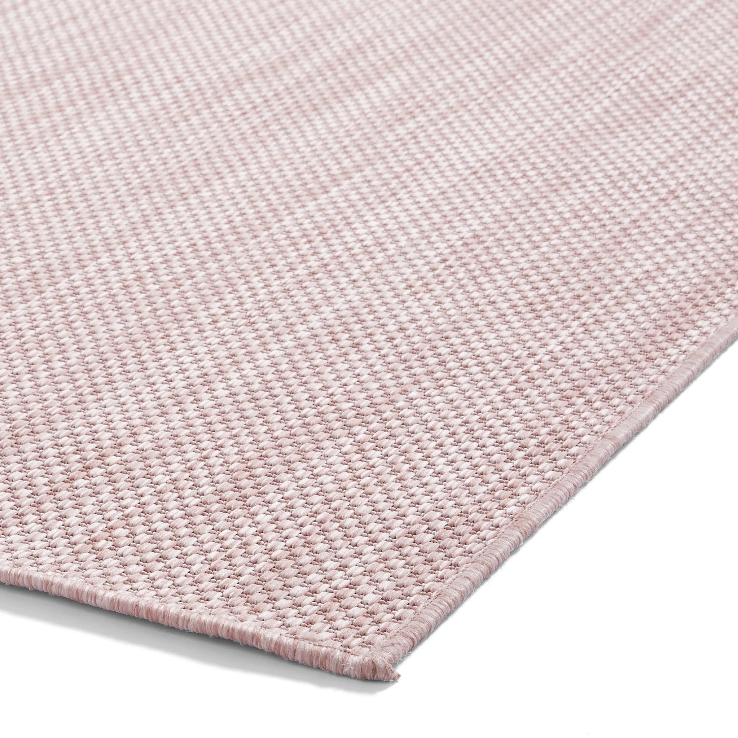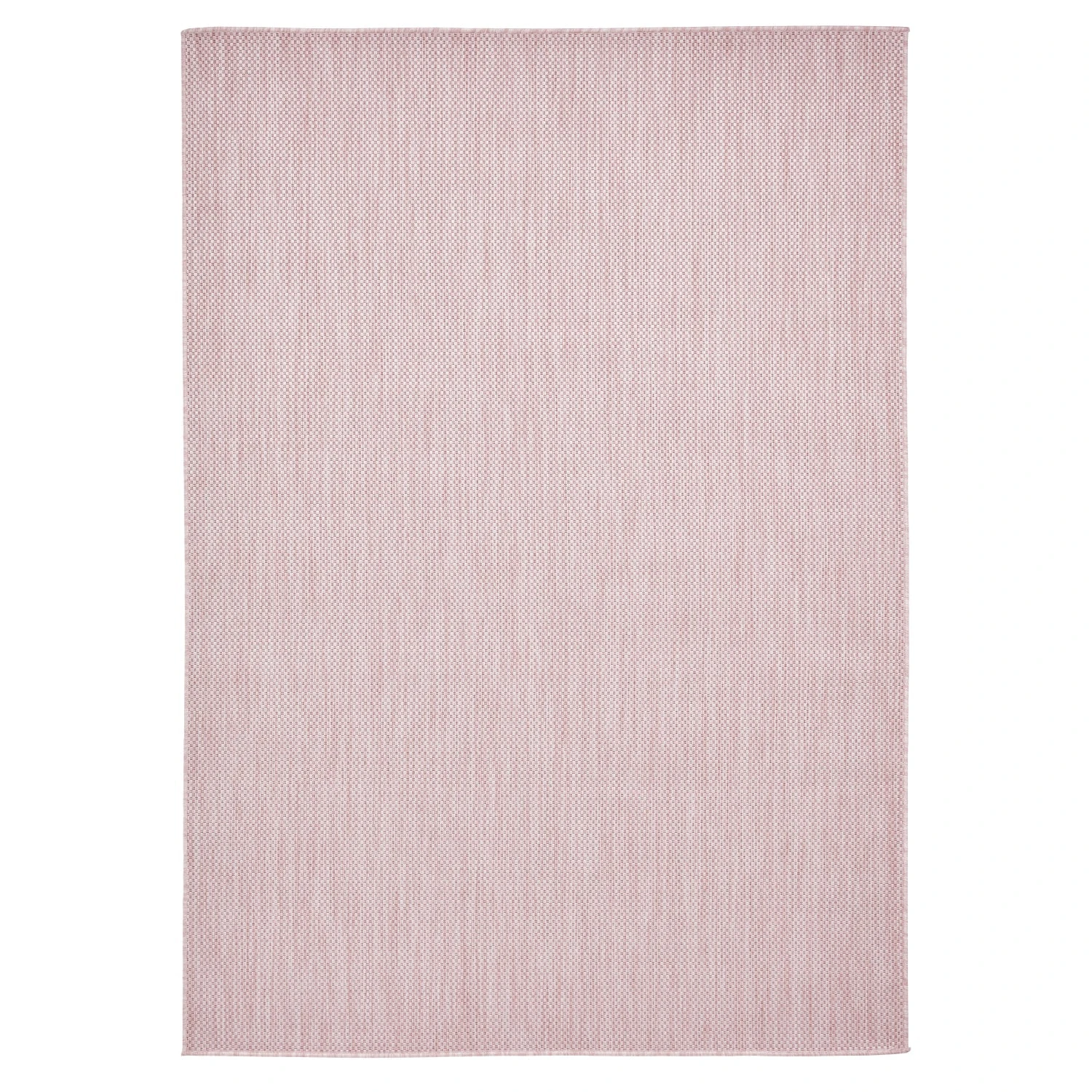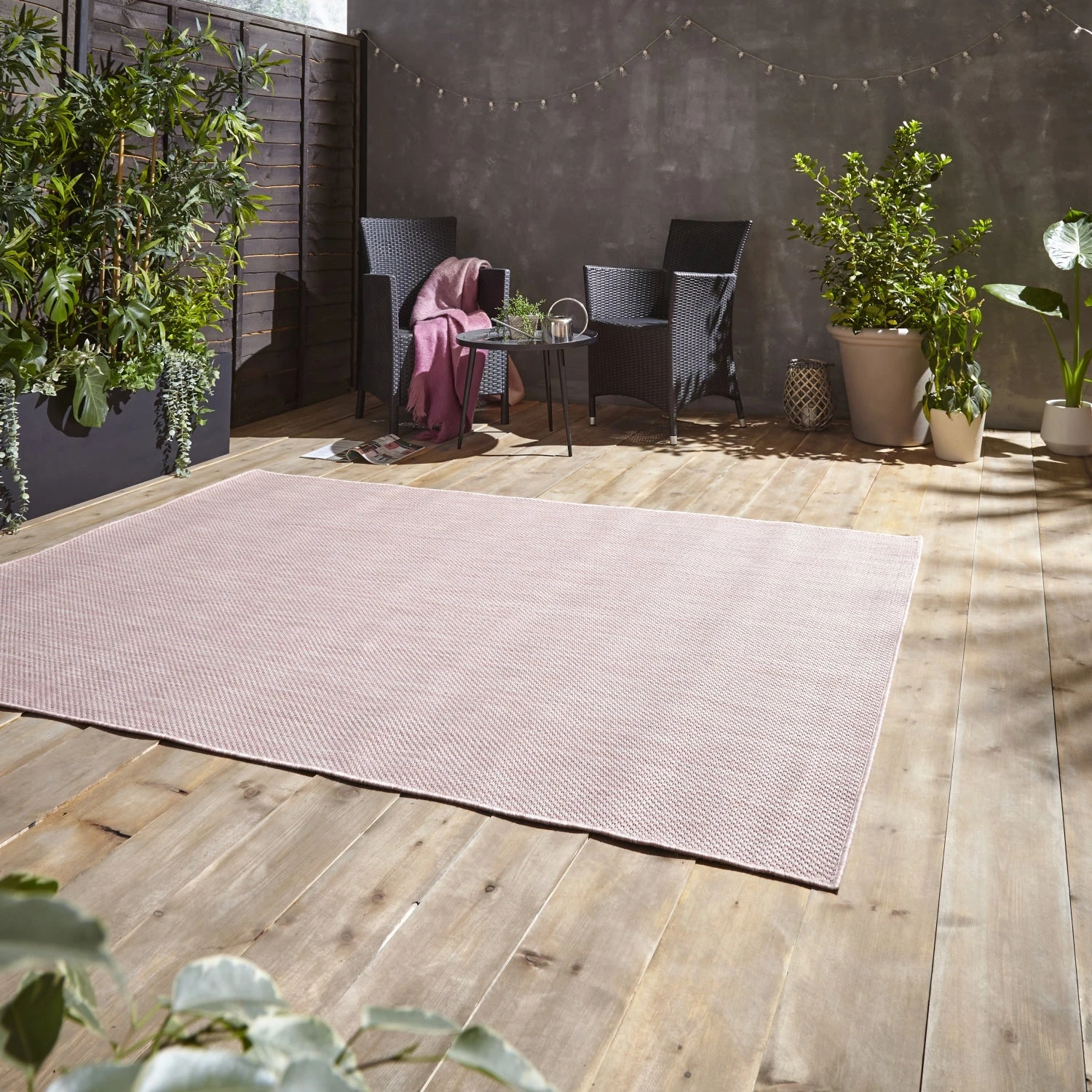 Introducing the POP! Outdoors Flat Weave Plain Rug in Pink, the perfect addition to any outdoor patio.
