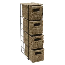 Seagrass Set Of 3 Rectangular Storage Baskets (Wood Handles)