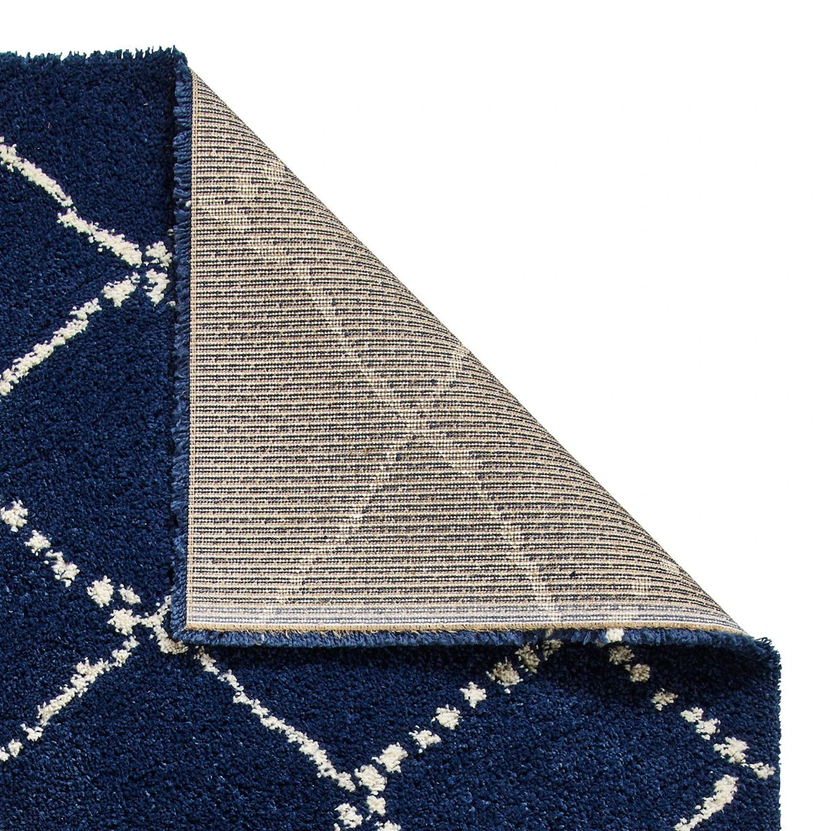 Discover the Royal Nomadic collection, where ultimate softness meets chic diamond patterns. Crafted with skill and premium treated yarn, this two-tone navy treasure takes machine made shaggy rugs to new heights of sophistication.