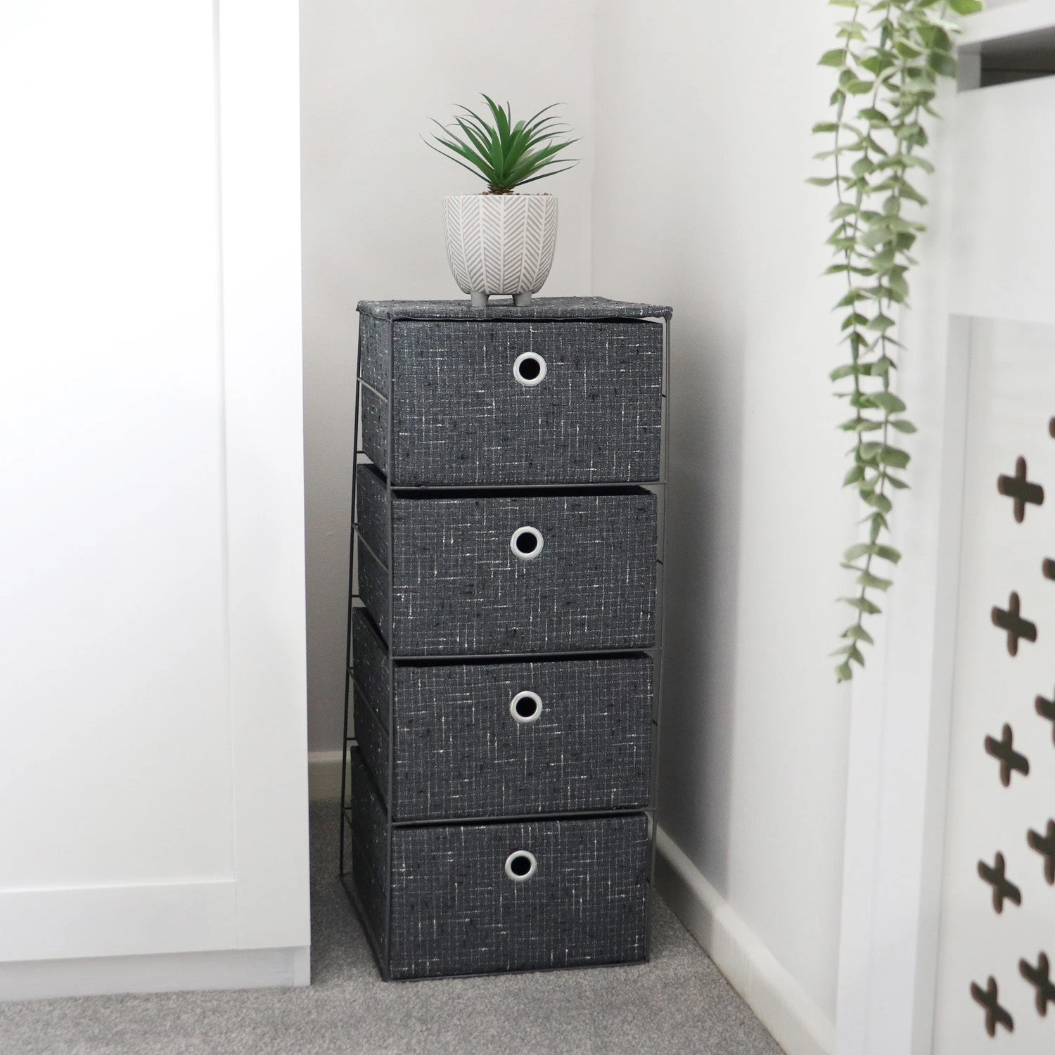 This narrow storage tower is designed to fit with your household decoration and is ideal for small garments, jewellery, make up and more. Use for storing bits and pieces around the home such as in a bedroom, living room, playroom, or office. This tower would also be great for students to use when space is limited.